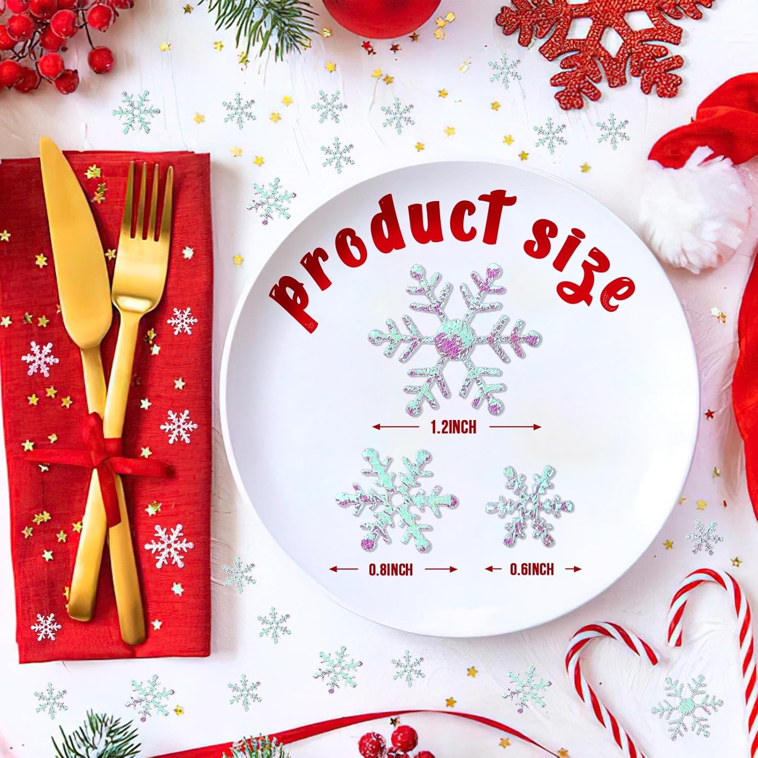 • Snowflakes Theme Design: The winter confetti is designed in the shape of a winter-themed snowflake, with 3 sizes of 1.18 inch, 0.79 inch and 0.59 inch. These shiny snowflake decorations focuses on the theme of the snowflake party, creating unforgettable moments and adding luster to the upcoming Christmas and winter