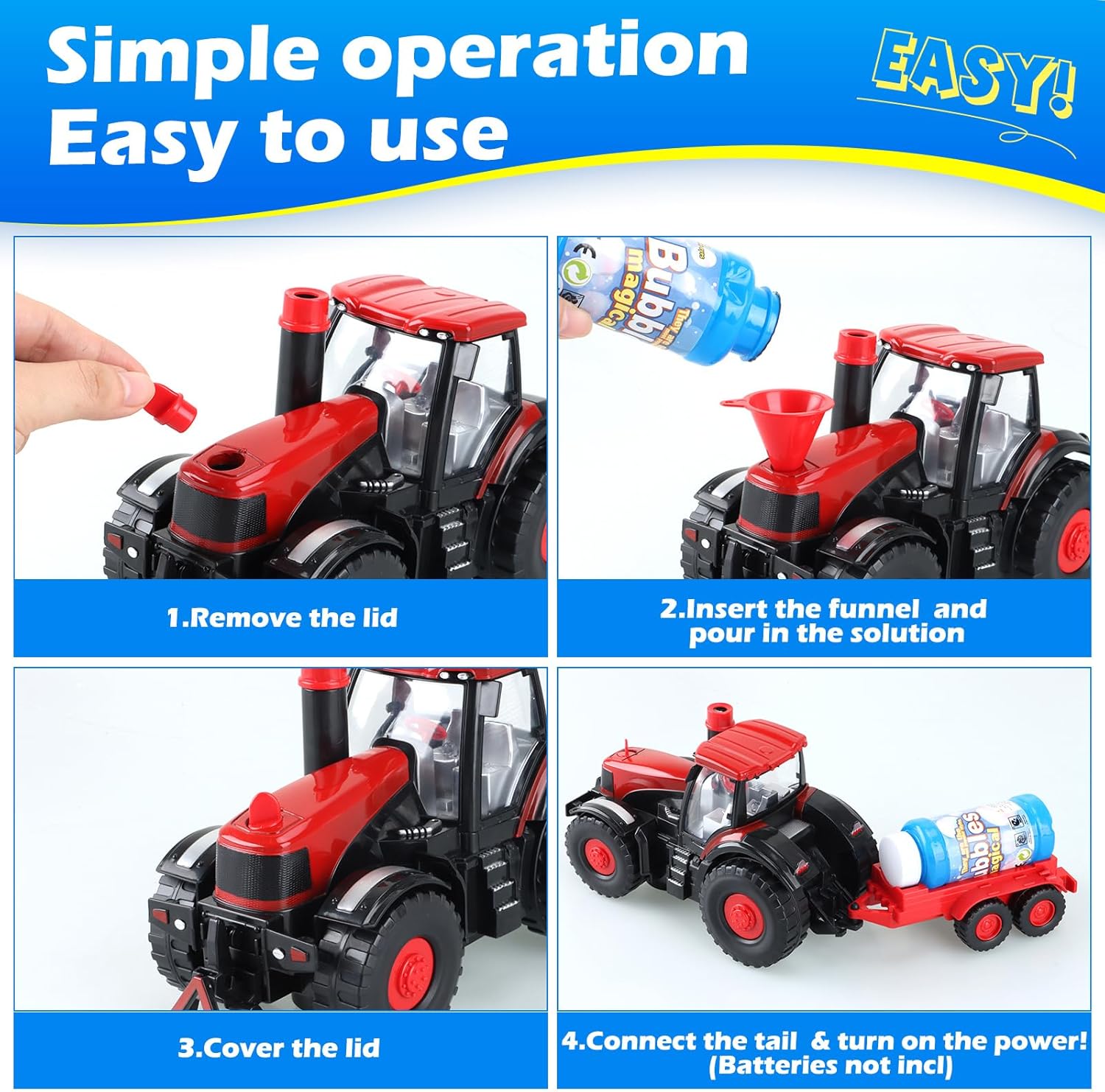 Tractor Bubble Machine for Kids 3 4 5 6 Years Old Boys: 2 in 1 Farm Tractor Toy Automatic Bubble Blowing with Lights & Sounds, Indoor Outdoor Toys for Toddlers, Ideal Gifts for 3-8 Year Olds