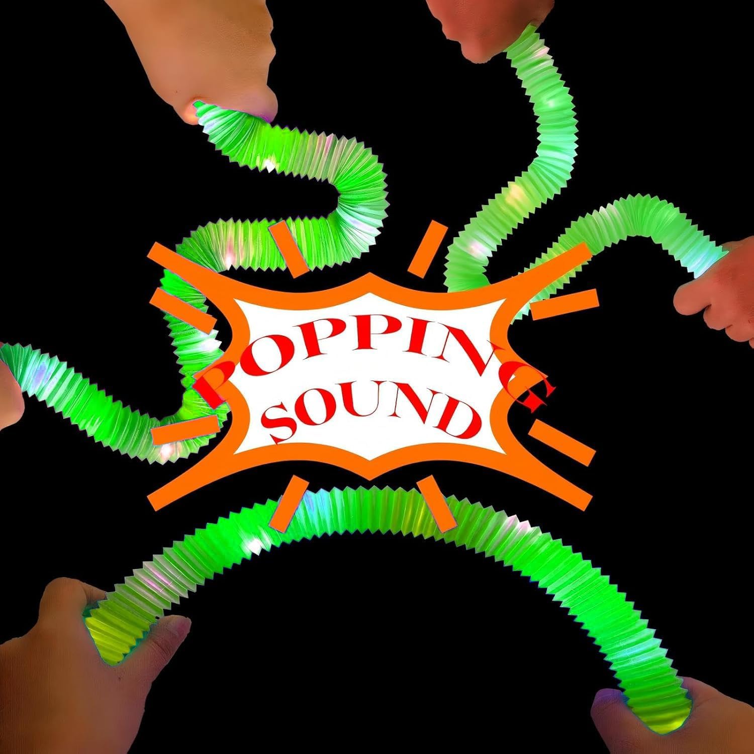 • When you stretch or twist the led pop tubes, it will make a satisfying "pop" sound and special touch, which can help to calm down and relieve anxiety by diverting attention to popping sounds. Nice choice as a playing kids party favors for indoor and outdoor