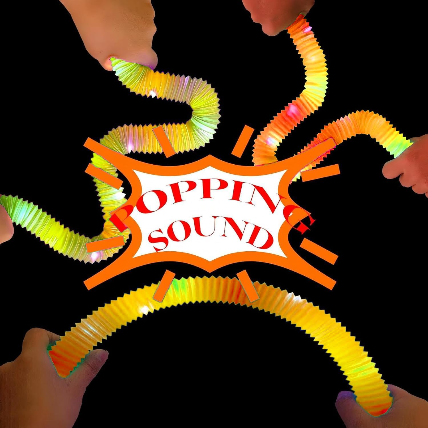 • When you stretch or twist the led pop tubes, it will make a satisfying "pop" sound and special touch, which can help to calm down and relieve anxiety by diverting attention to popping sounds. Nice choice as a playing kids party favors for indoor and outdoor