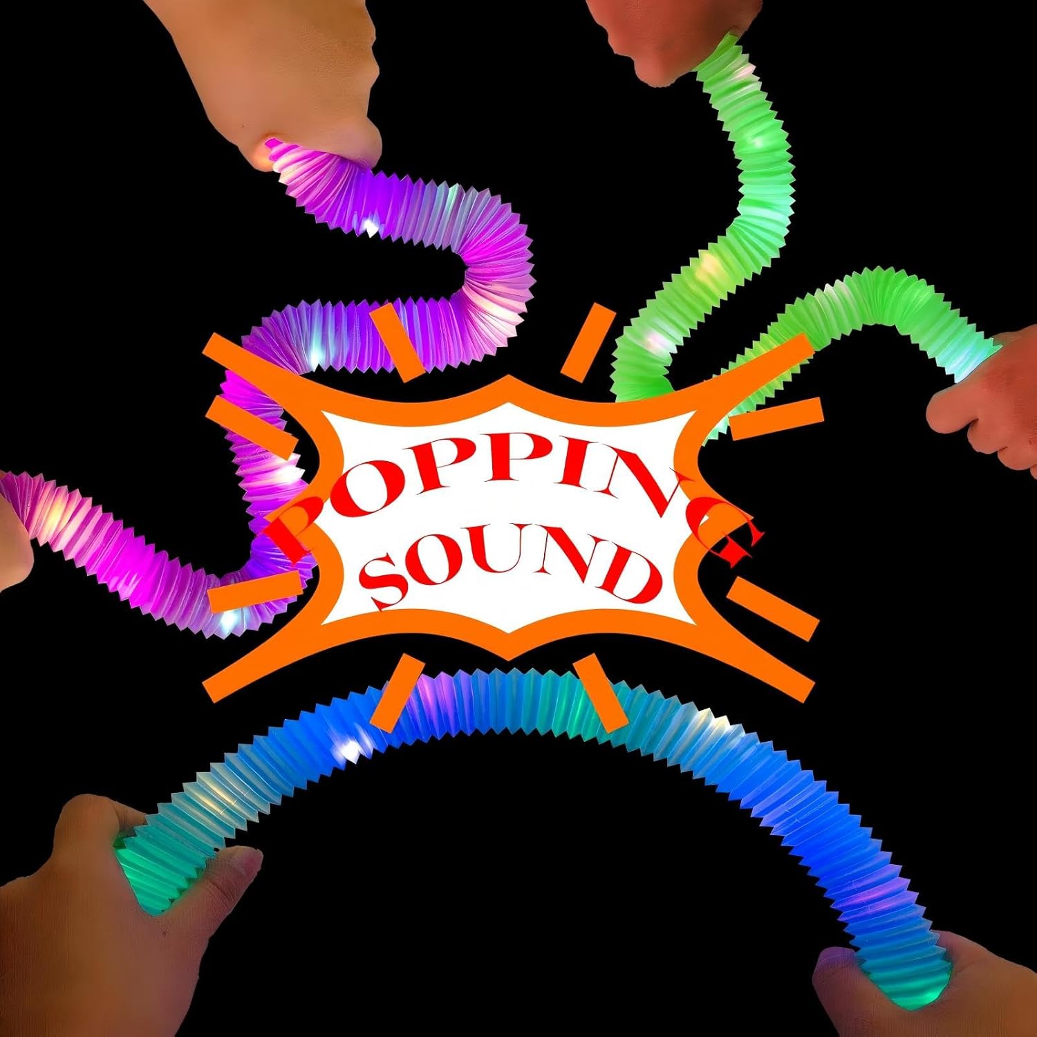 • When you stretch or twist the led pop tubes, it will make a satisfying "pop" sound and special touch, which can help to calm down and relieve anxiety by diverting attention to popping sounds. Nice choice as a playing kids party favors for indoor and outdoor