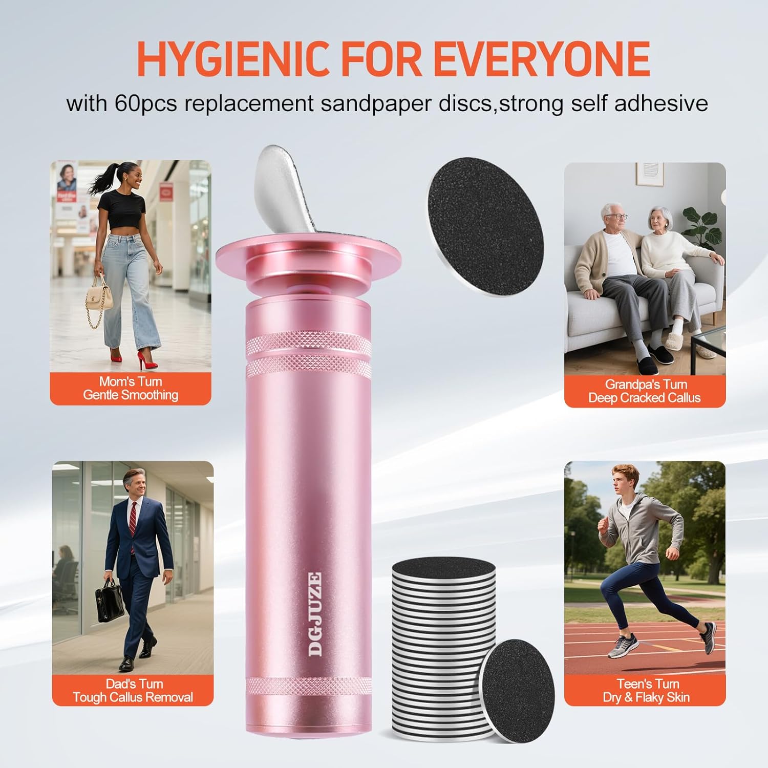 • Designed with a metal body for durability,:this electirc foot filer is built to last. 60pcs replaceable sandpaper discs ensure clean and hygienic, one person one disc,making it a cost-effective solution for callus remover for feet.