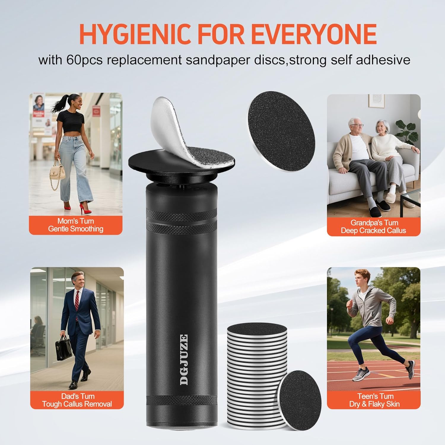 • Designed with a metal body for durability,:this electirc foot file is built to last 60pcs replaceable sandpaper discs ensure clean and hygienic, one person one disc,making it a cost-effective solution for all calluses, corns, and dry skin.