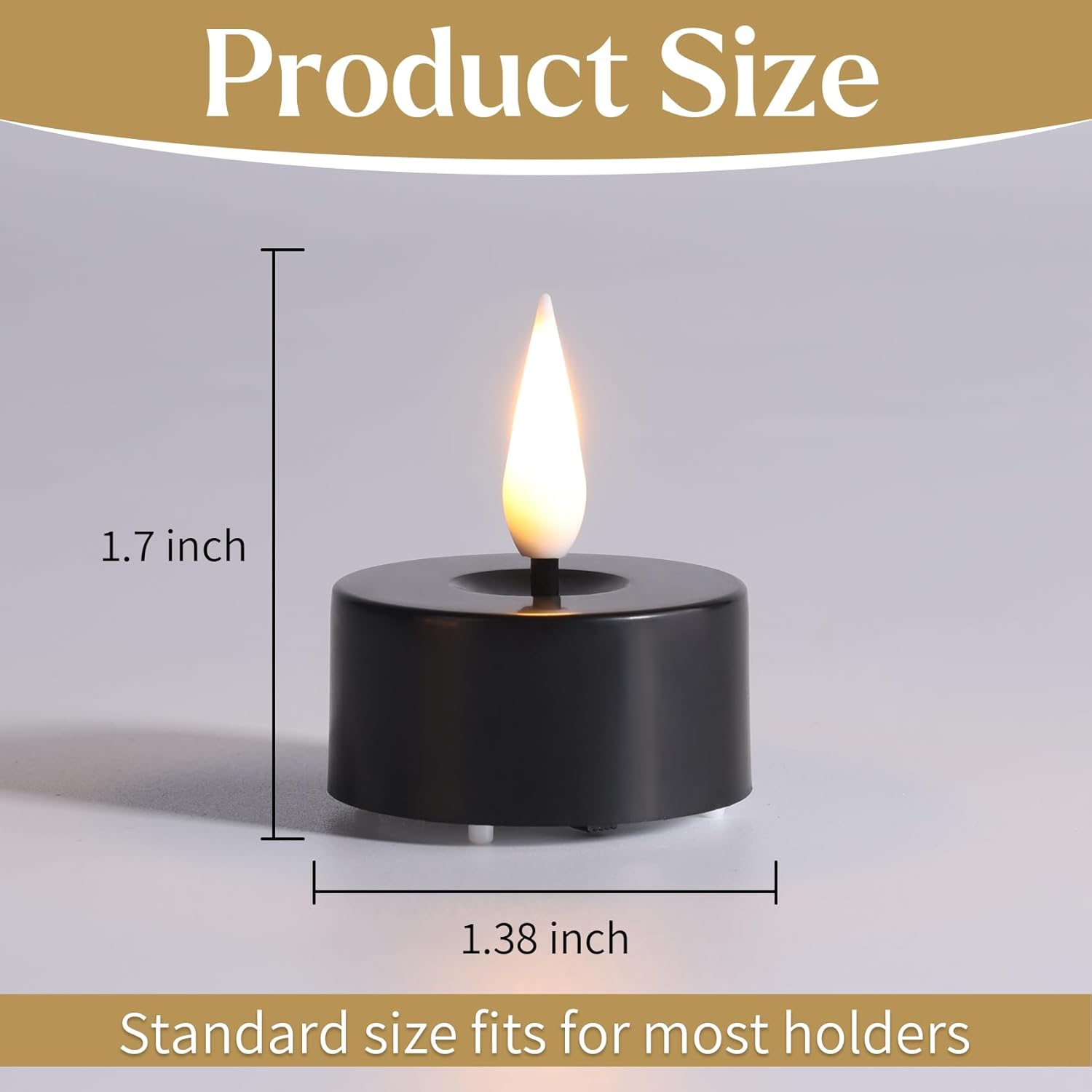 • Realistic & Bright: each tealight measures Φ 1.38" by H 1.57", made by premium plastic and simulated black wick flame, giving off a warm white glow, the reality will fool your eyes especially lit