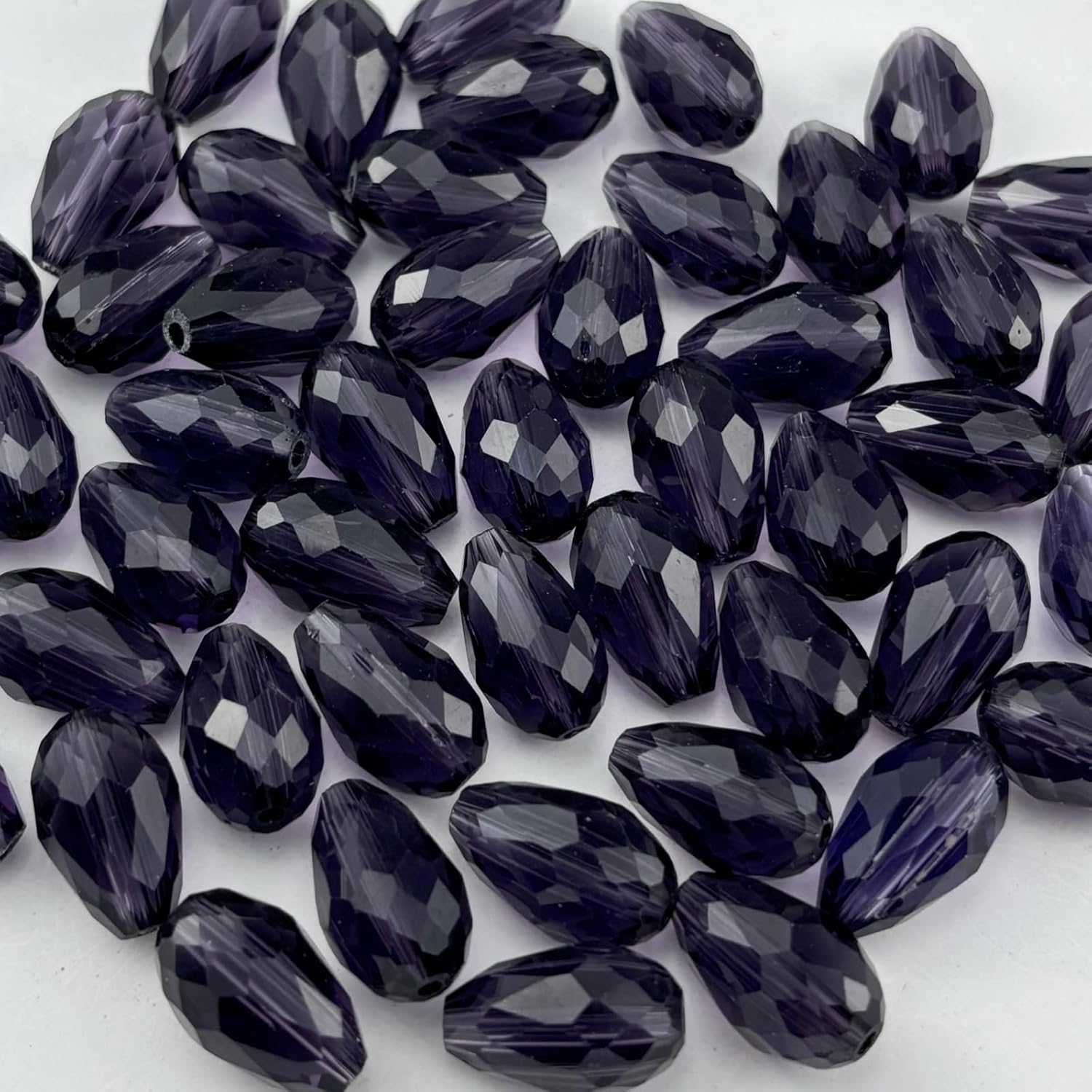 50pcs 10x15mm Teardrop Crystal Glass Beads for Jewelry Making, Faceted Vertical Hole Teardrop Glass Spacer Beads for Wind Chimes Bracelet Earring Necklace DIY Craft(Violet)