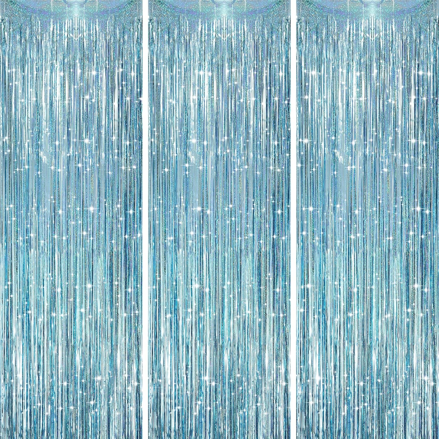 3 Pack 3.3 x 8.2 ft Laser Blue Foil Fringe Backdrop Curtains, Tinsel Streamers Party Decorations, Fringe Backdrop