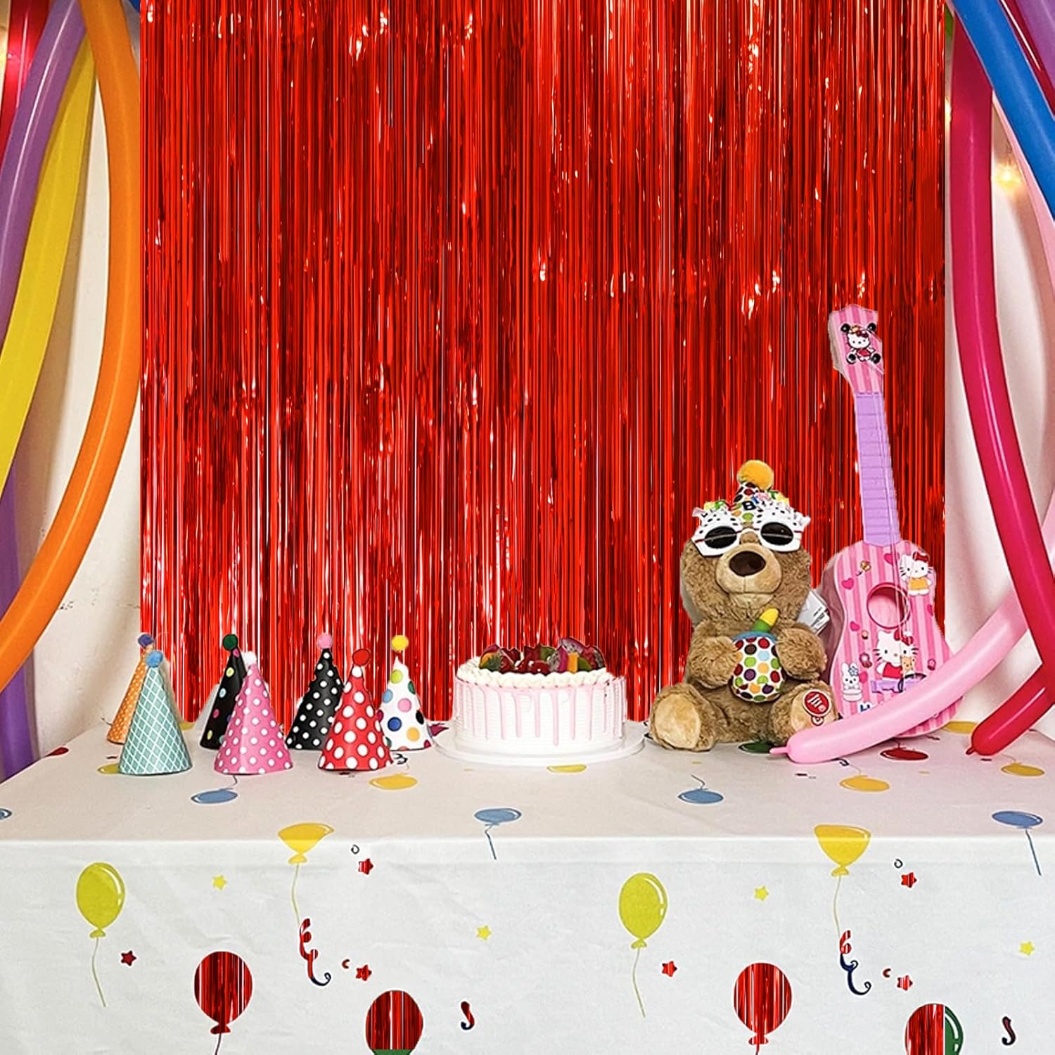 2 Pack Red Tinsel Foil Fringe Curtains, Red Party Decorations, Metallic Tinsel Party Streamers Backdrop for Birthday Red Carpet Christmas Graduation Carnival Valentine's Party Decorations