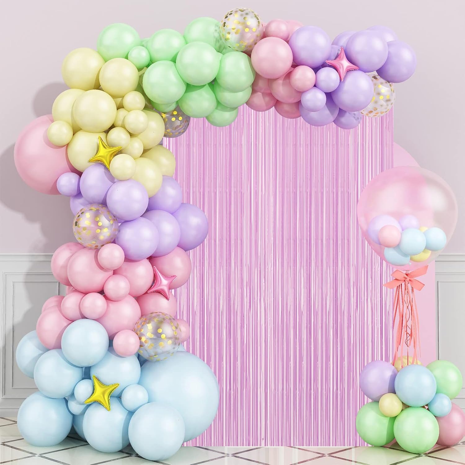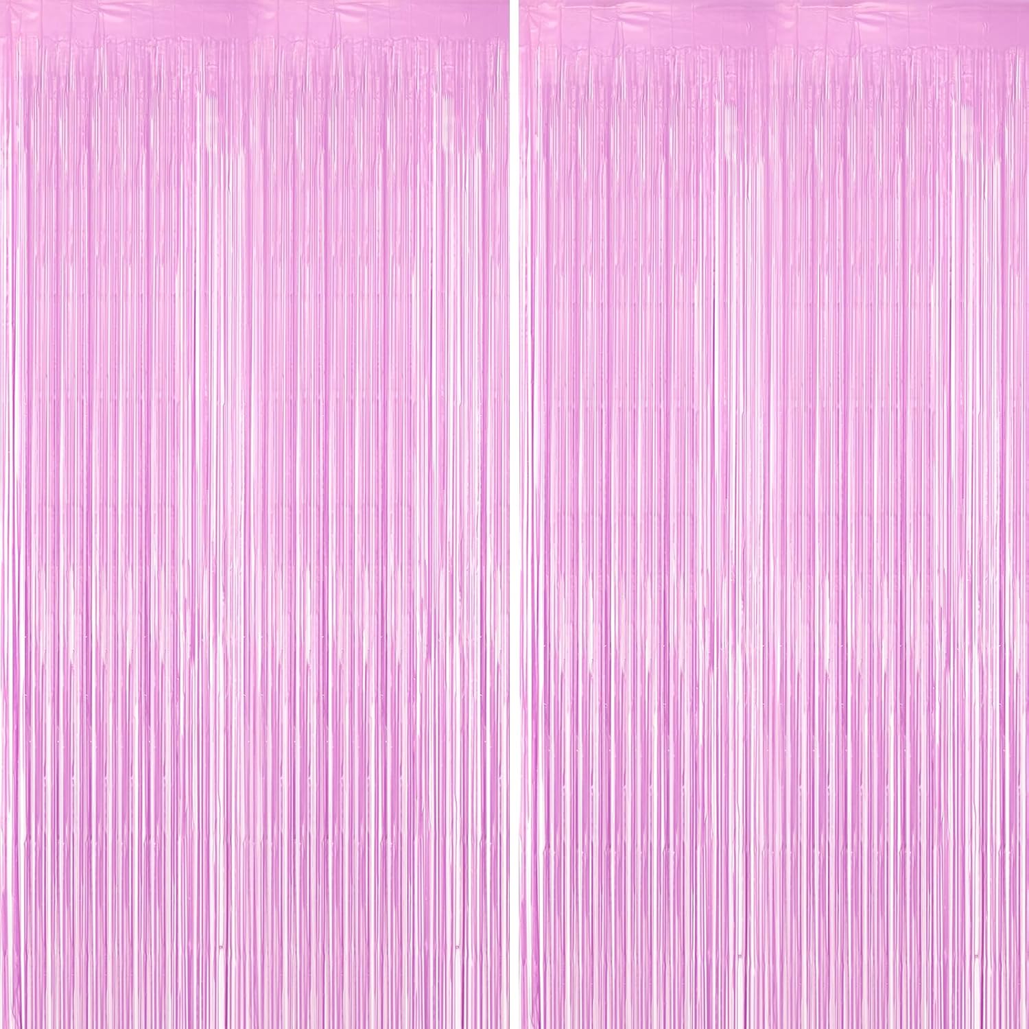 2 Pack Pastel Purple Foil Fringe Backdrop Curtains, Tinsel Streamers Birthday Party Decorations for Girl, Fringe Backdrop for Graduation, Baby Shower, Gender Reveal, Halloween Party