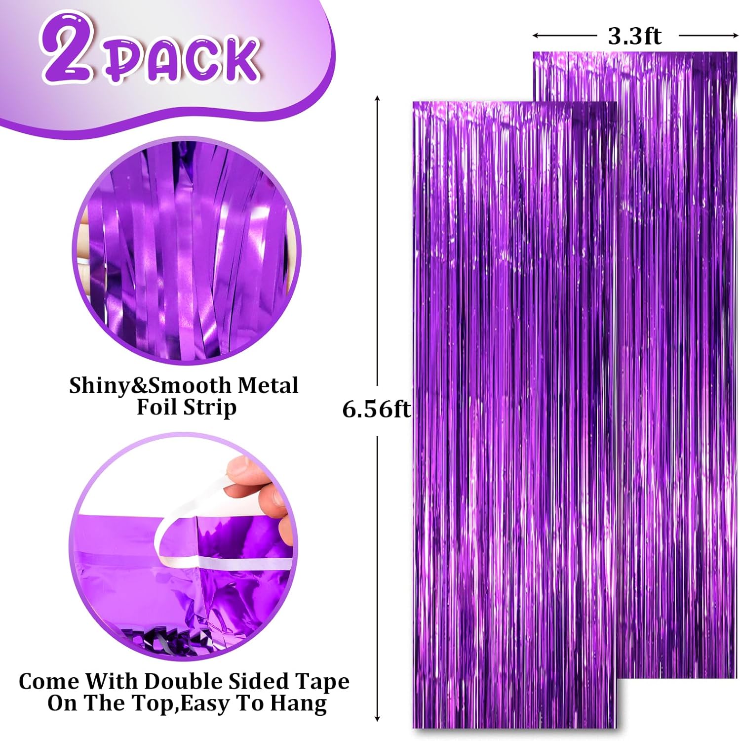 2 Pack Purple Tinsel Foil Fringe Curtains, Purple Party Decorations, Metallic Tinsel Party Streamers Backdrop for Halloween Mermaid Bachelorette Graduation Party Decorations