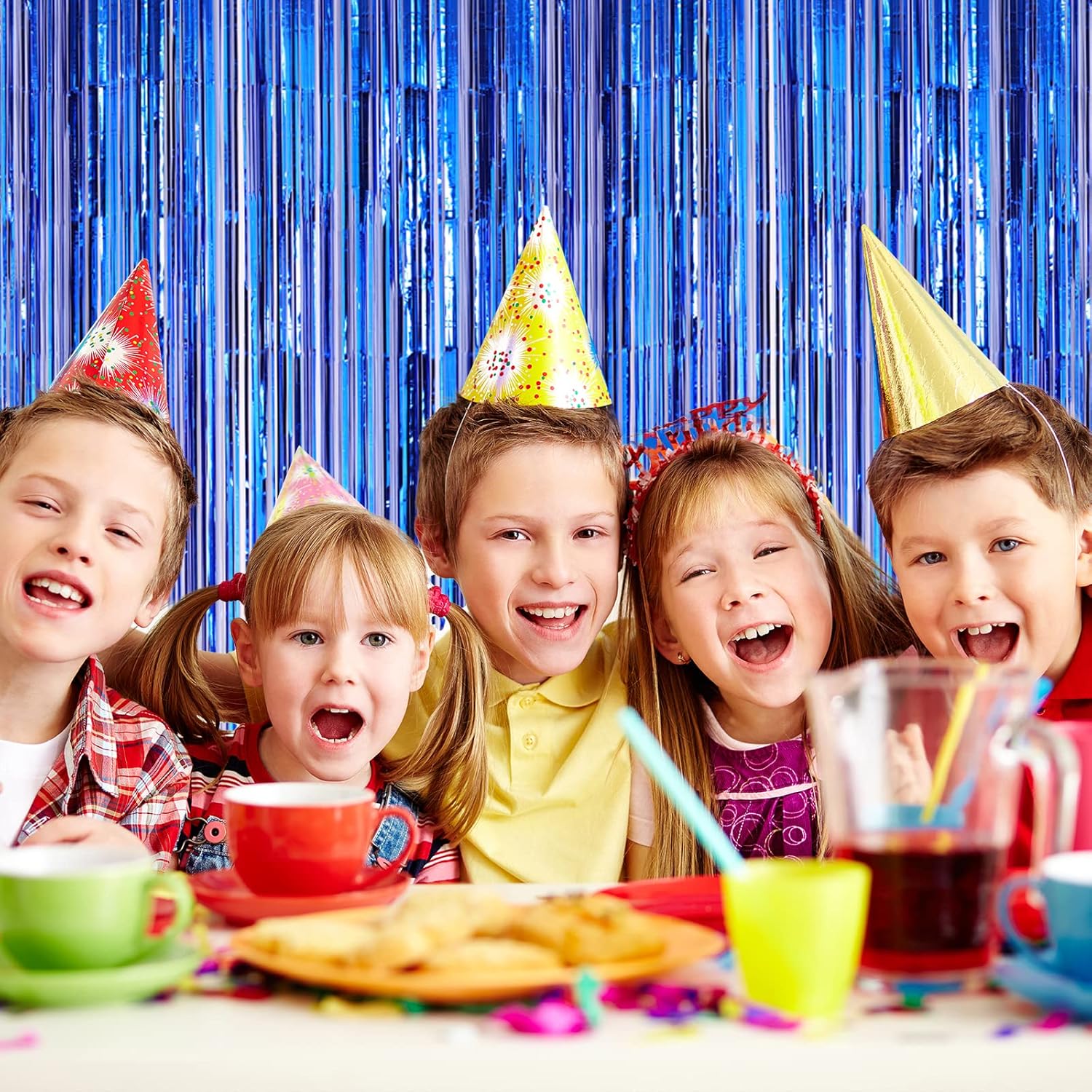2 Pack Blue Foil Fringe Backdrop Curtains, Tinsel Streamers Party Decorations, Fringe Backdrop for Graduation, Disco Party