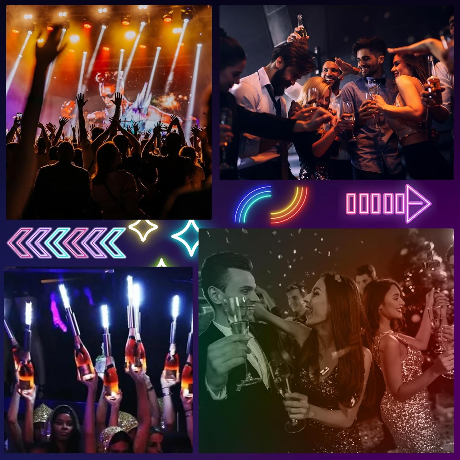 • 【Lightweight and Durable Material】These bottle service sparklers lights are made of premium aluminum alon material, sturdy and lightweight and non-fading, strobe light for parties, not easy to break or deform for long use. The LED bottle service lights can be widely used for various occasions and outdoor activities
