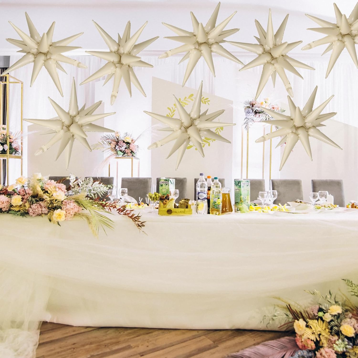 • Cream White Star Balloons Set:Package include 9pcs 22Inch cream white explosion star balloons.Large enough to help you better decorate your party.