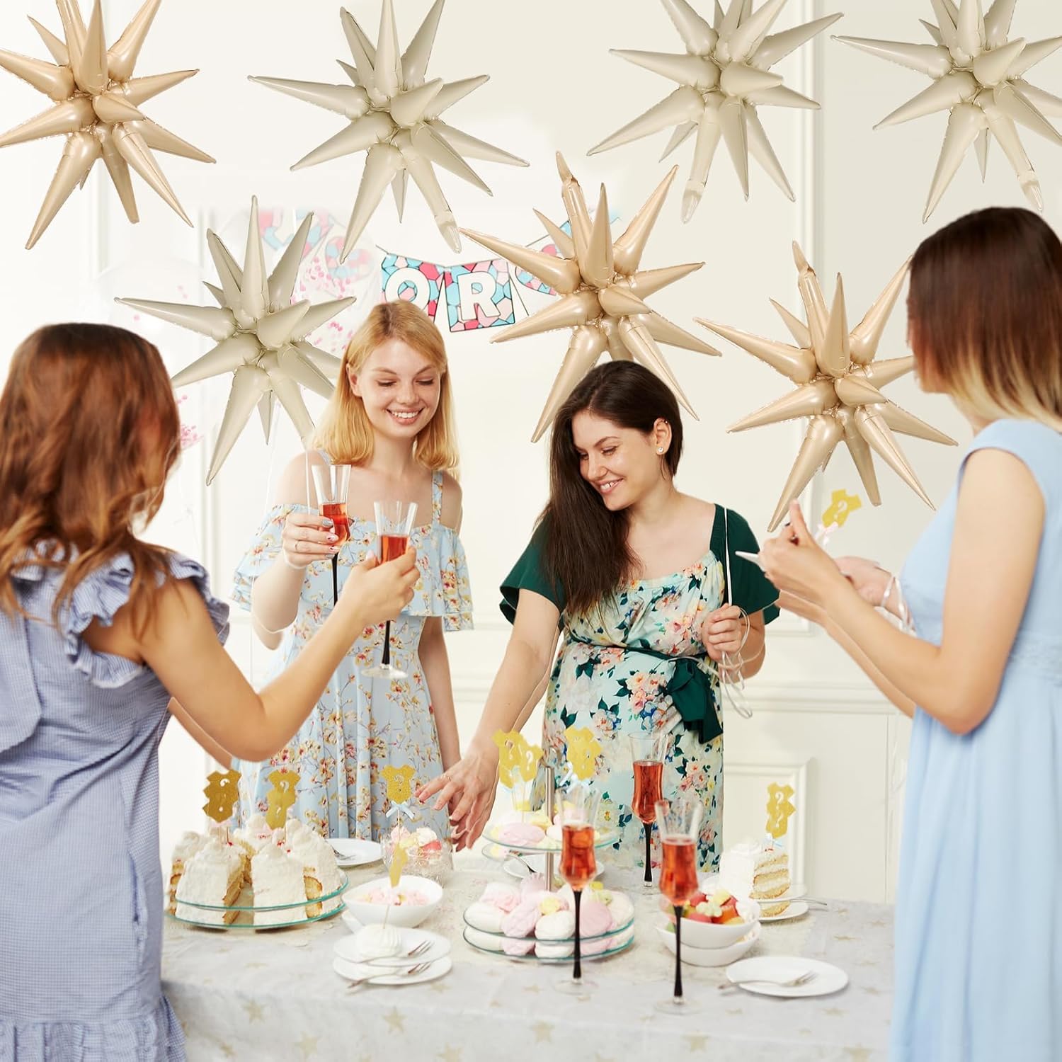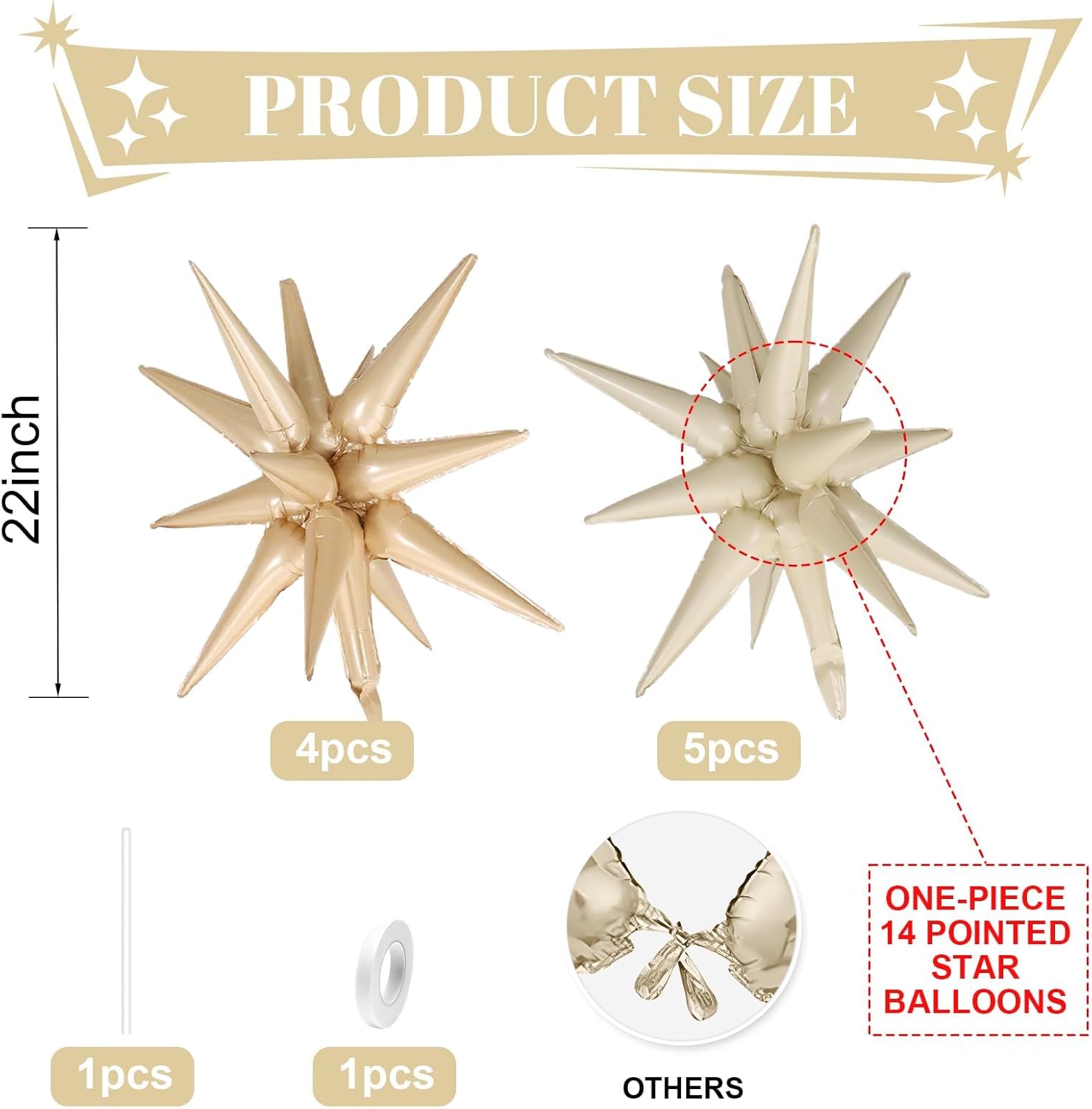 • Cream White Beige Star Balloons Set:Package include 9pcs 22Inch explosion star balloons(cream white x 5,beige x 4).Large enough to help you better decorate your party.