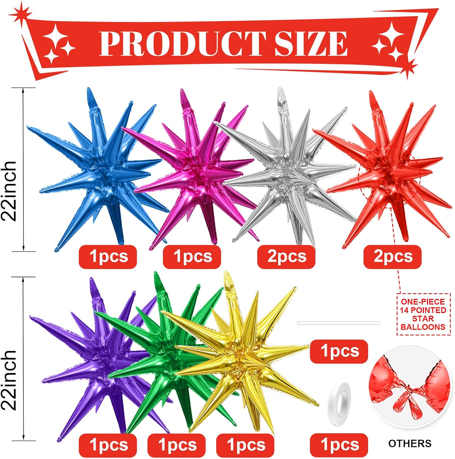 • Colorful Star Balloons Set:Package include 9pcs 22Inch explosion star balloons(silver x 2,red x 2,gold x 1,hot pink x 1,dark blue x 1,green x 1,purple x 1).Large enough to help you better decorate your party.