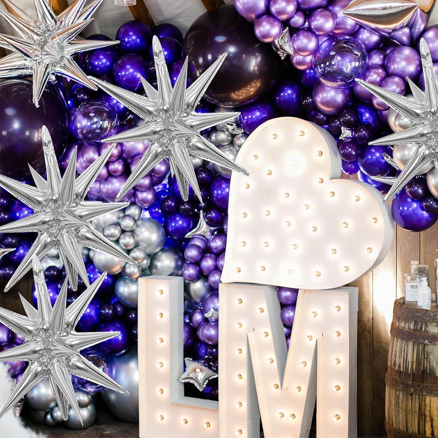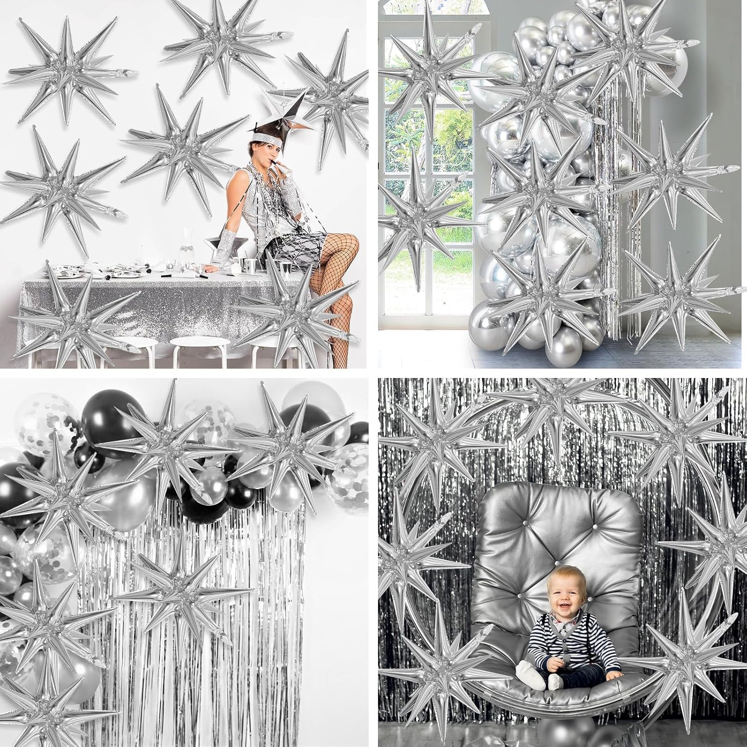 • Silver Star Balloons Set:Package include 9pcs 22Inch silver explosion star balloons.Large enough to help you better decorate your party.