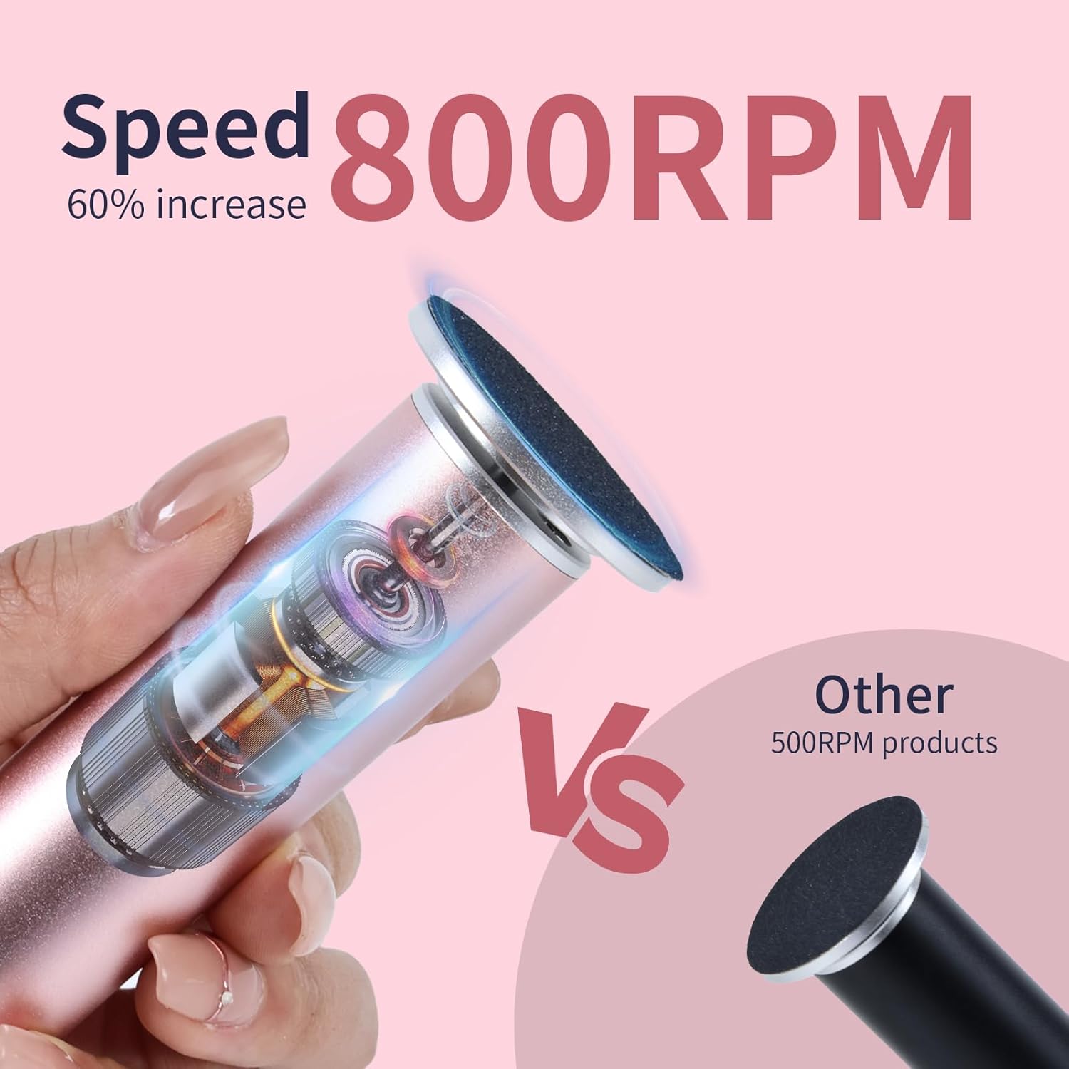 • Upgraded Stepless Adjustable Speed: The electric foot filer offers precise control over rotational speed, with a maximum of 800 RPMβ€”60% faster than the 500 RPM of other modelsβ€”allowing for more efficient removal of calluses
