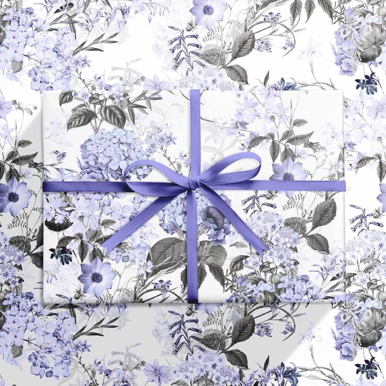 RUSPEPA Floral Wrapping Paper Roll for Women Girls, Mini Roll, Elegant Hydrangea Flower Design Gift Wrap Paper Perfect for Wedding, Birthday, Mother's Day, Spring, Bridal Shower, 17 Inch x 16.4 Feet