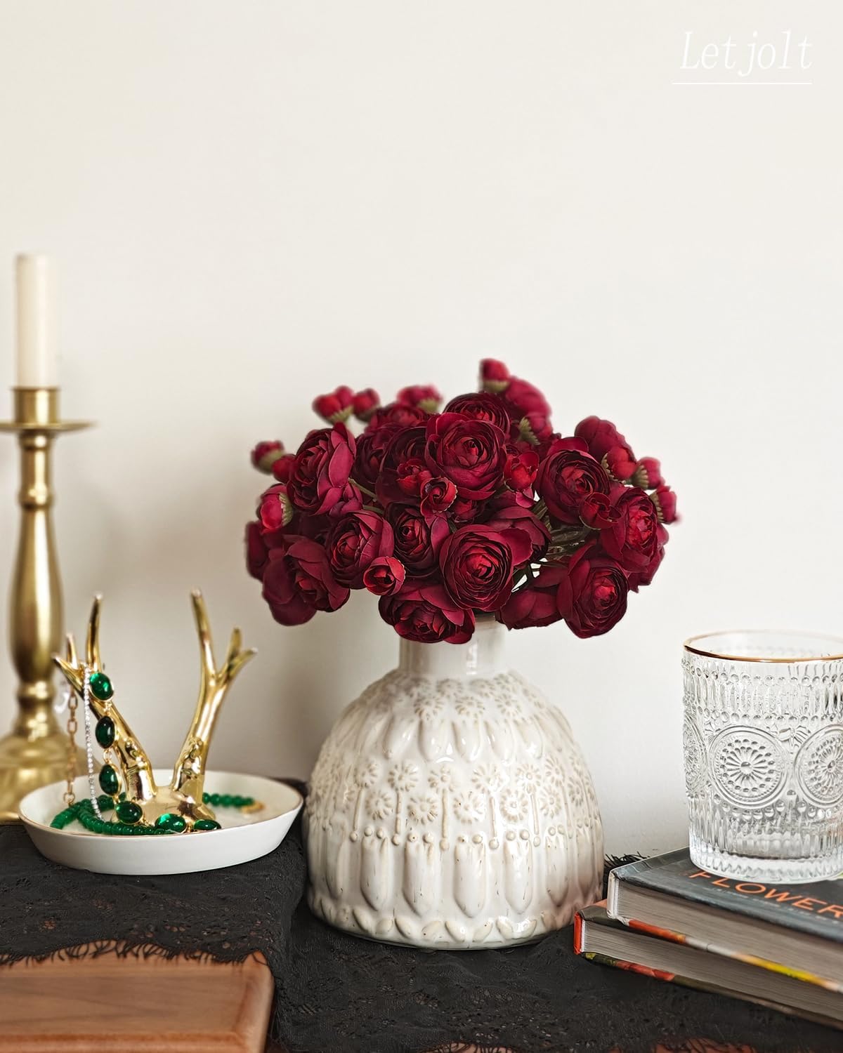 Letjolt Ranunculus Artificial Flower 18 Pcs Red Silk Ranunculus Wedding Bouquet Engagement Centerpieces Arrangements Bridal Shower Decorations Home Decor, Dark Red