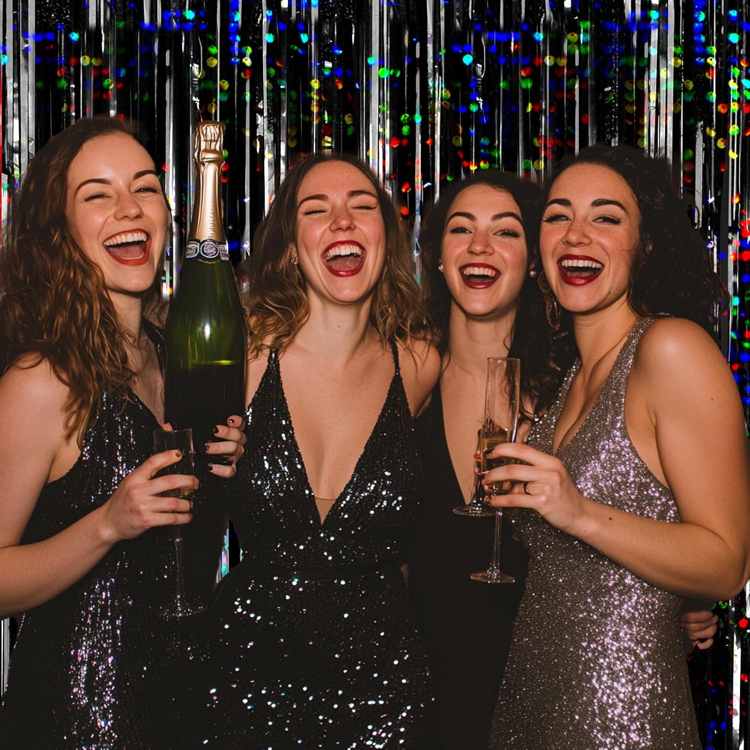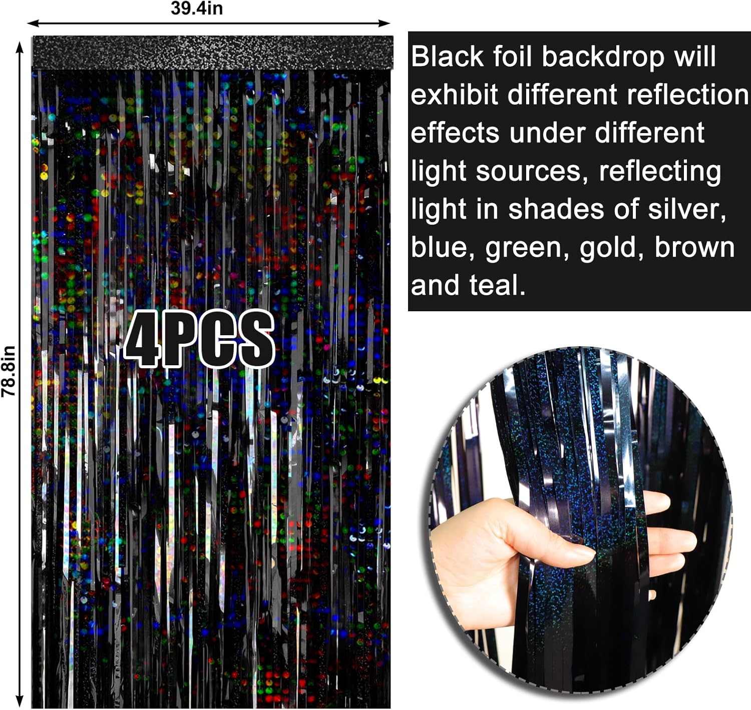 • Shimmery Fringe Backdrop: You will receive 4 pieces black tinsel backdrop, each pack curtains size is 3.3ft x 6.6ft, enough length for decorate your party. These foil backdrop curtains are perfect for the door or wall to create an impressive decoration for parties, events, and photo booths.