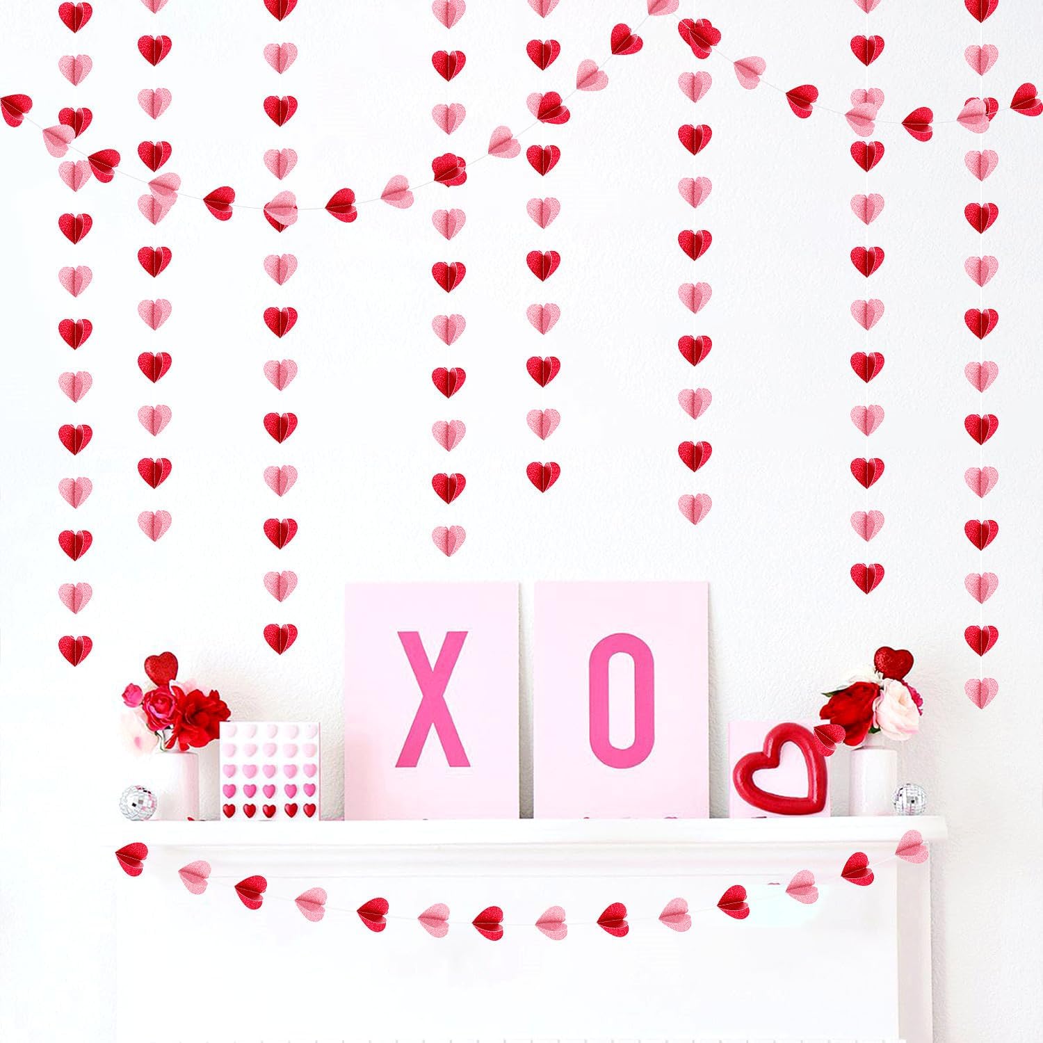 • 【Red Pink Valentines Decorations Kit Includes】The 3D party garlands includes 4pcs paper garlands, each backdrop bunting is 10 feet/ 3 meters long, total length is 40 feet/12 meters. Every love shape Streamer Banner has 30pcs dots which the size is 2”.