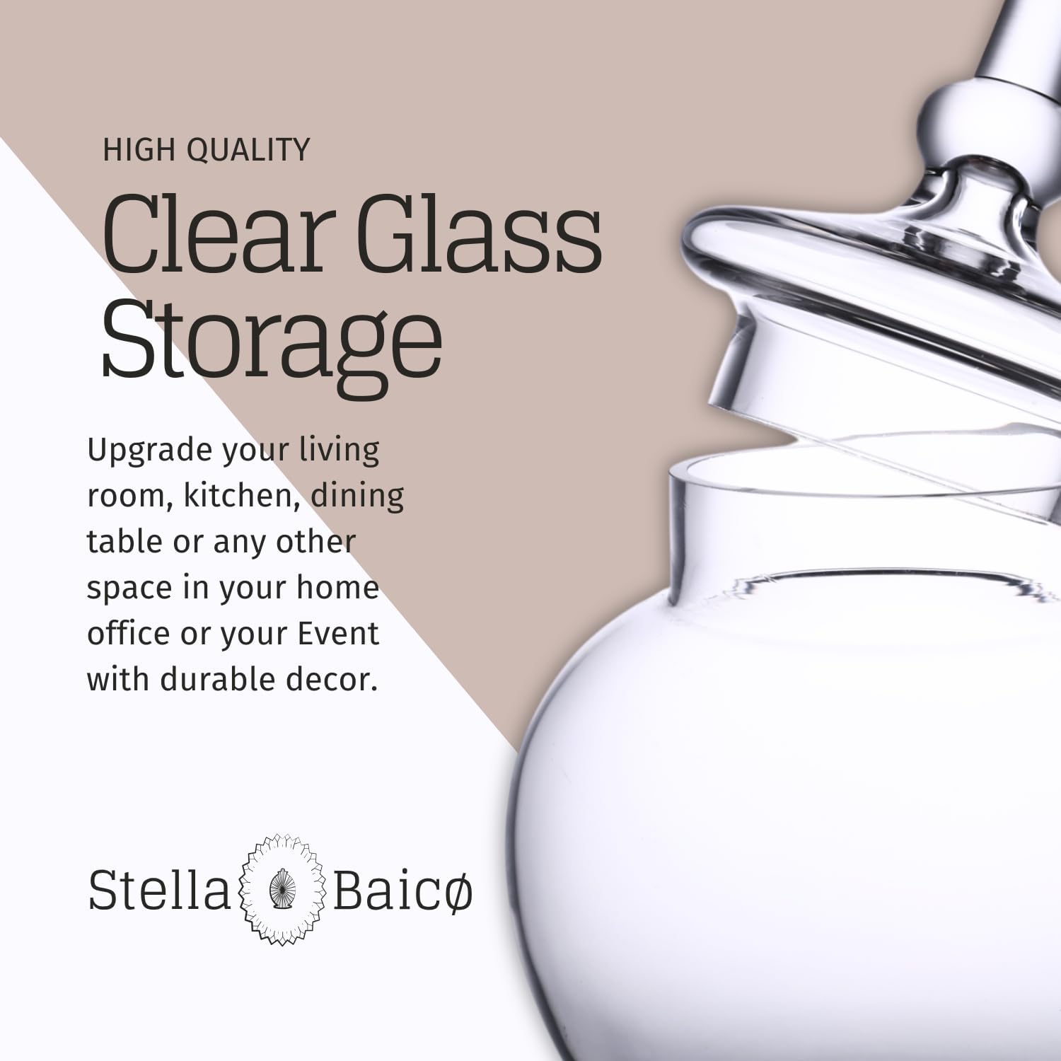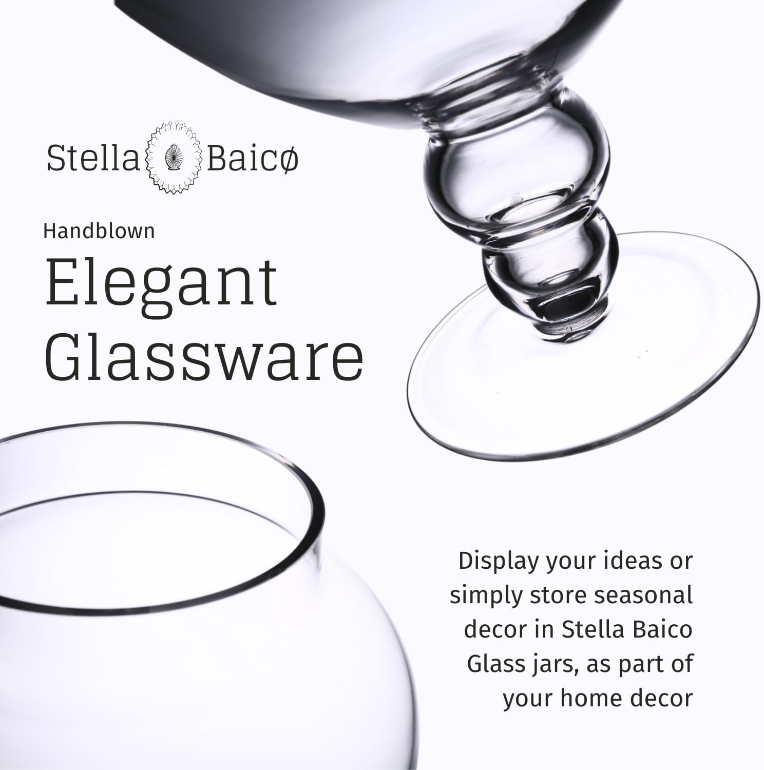 • HAND-BLOWN GLASS: Crafted from durable, high-quality hand-blown clear glass, this apothecary jar features a sleek, crystal-clear design that showcases its contents. Small air bubbles are a natural part of the hand-blown process, adding to its unique charm.