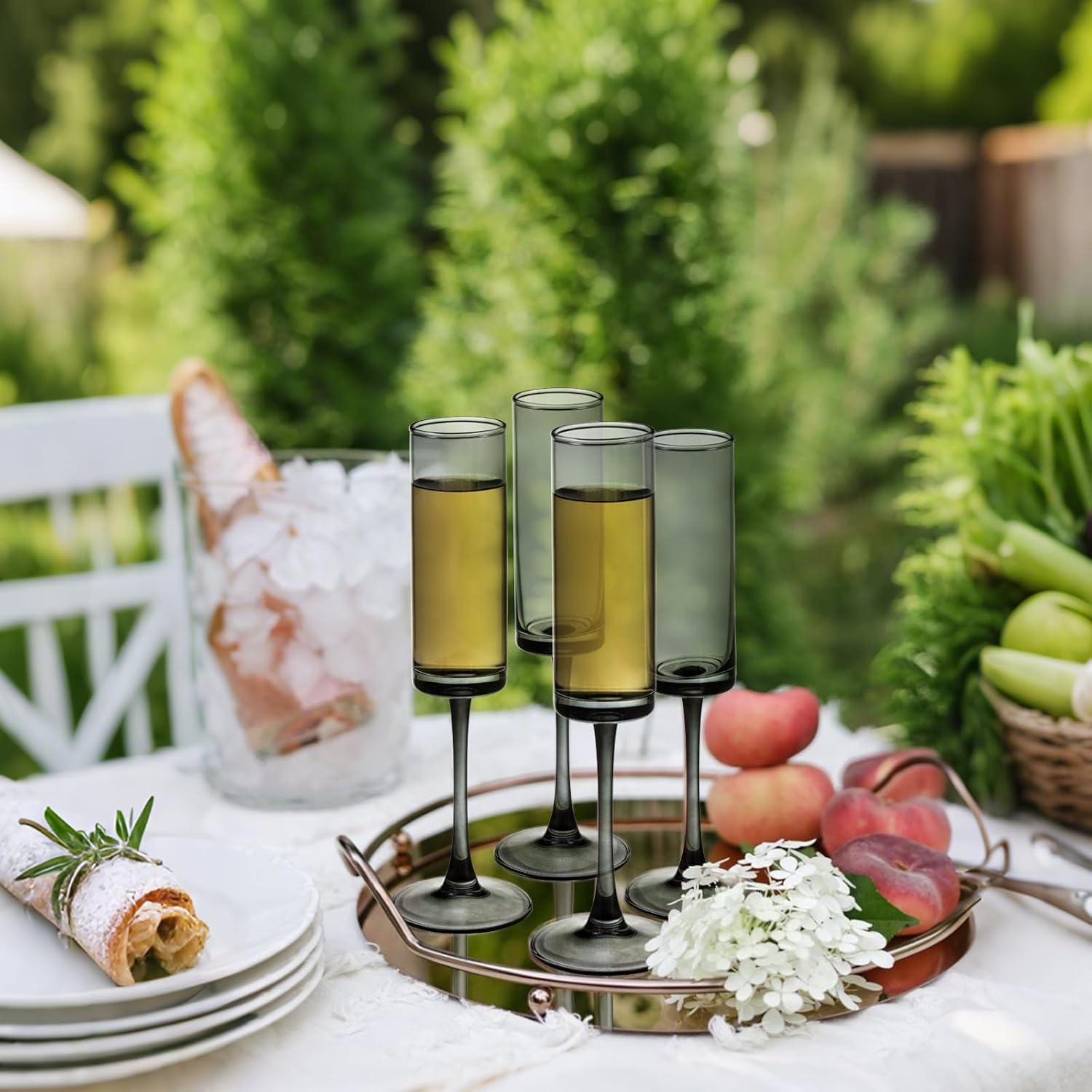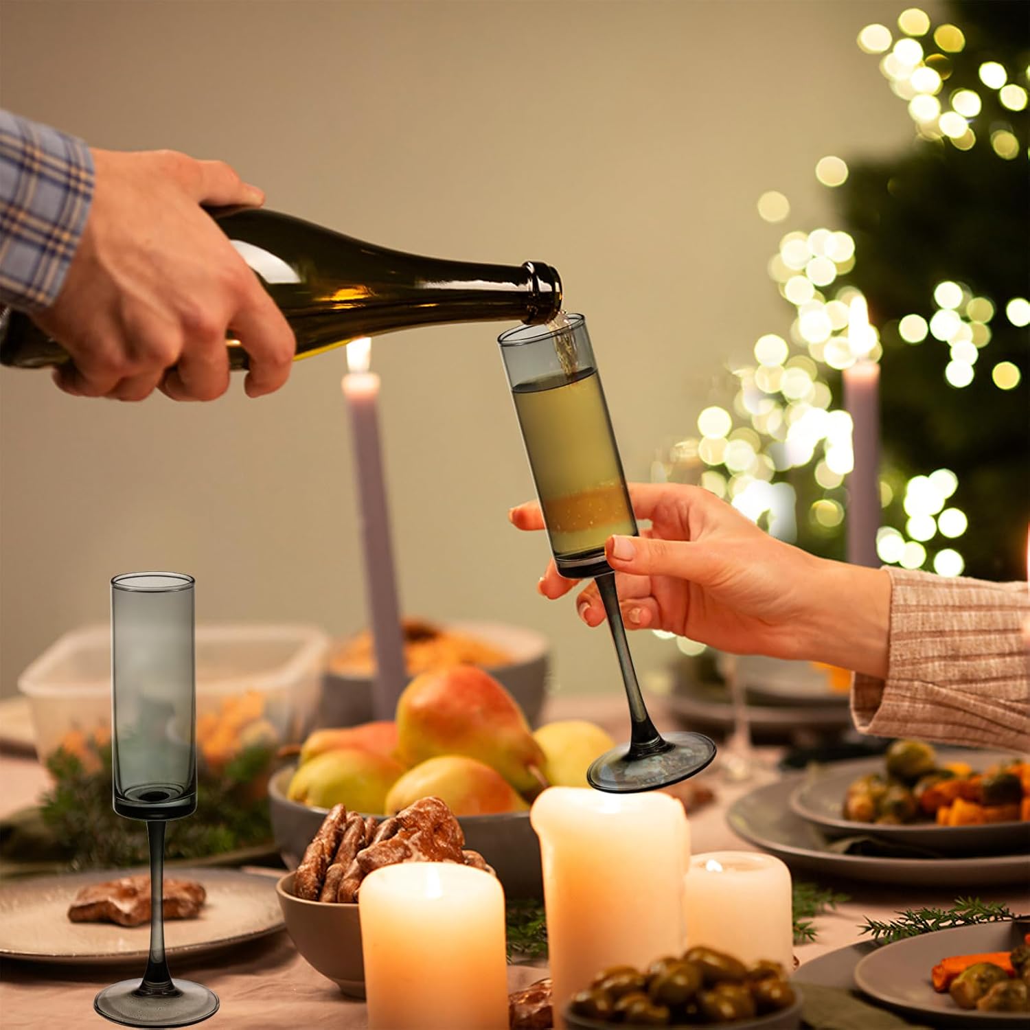 12 Pieces Black Champagne Flutes 6 OZ Straight Sided Wine Glasses Champagne Long Stem Drinking Colored Glasses,Set of 12 Hand Blown Champagne Flutes Goblets for Wedding Cocktail Cups,Cava, Prosecco