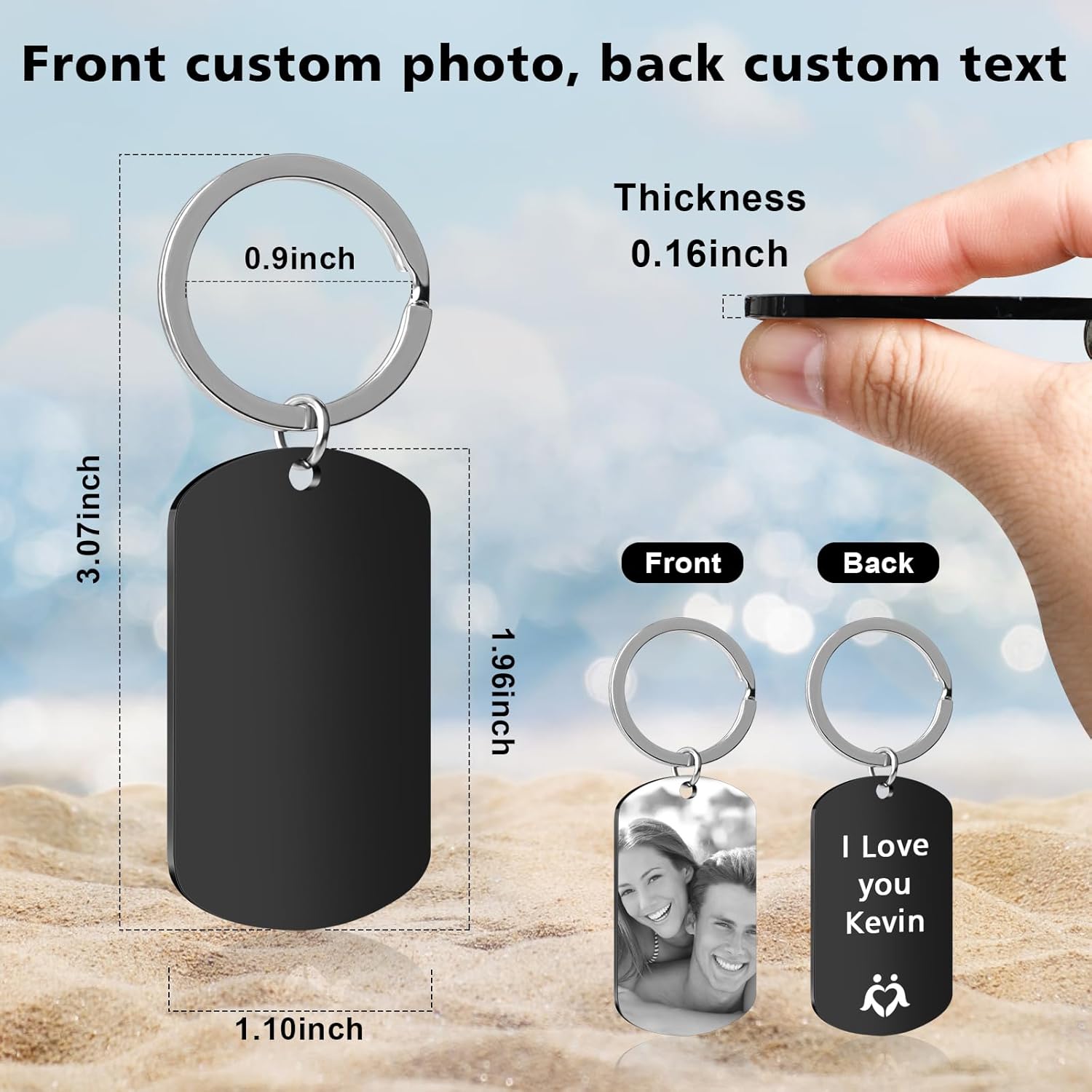 • Double-Sided Custom Keychain- The personalized keychain lets you capture and carry cherished memories, Upload a favorite photo on the front. Add names, dates, promise words, company slogan ,or special text on the back, making it a thoughtful keepsake keychain photo gift for yourself,girlfriend,boyfriend,wife,husband,parents,brother, sister or your pets.