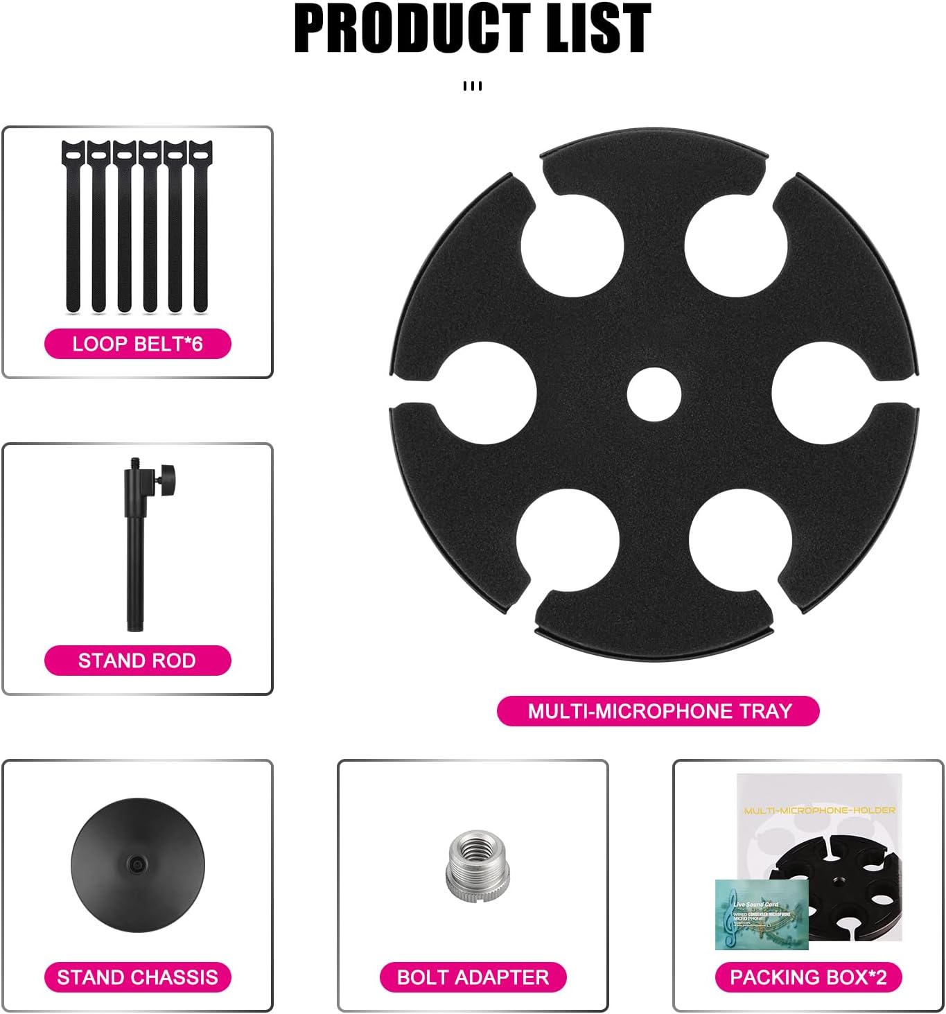 • With this multi microphone holder, you can hold up 6 mics, eliminating the hassle of having your mics scattered around when not in use
