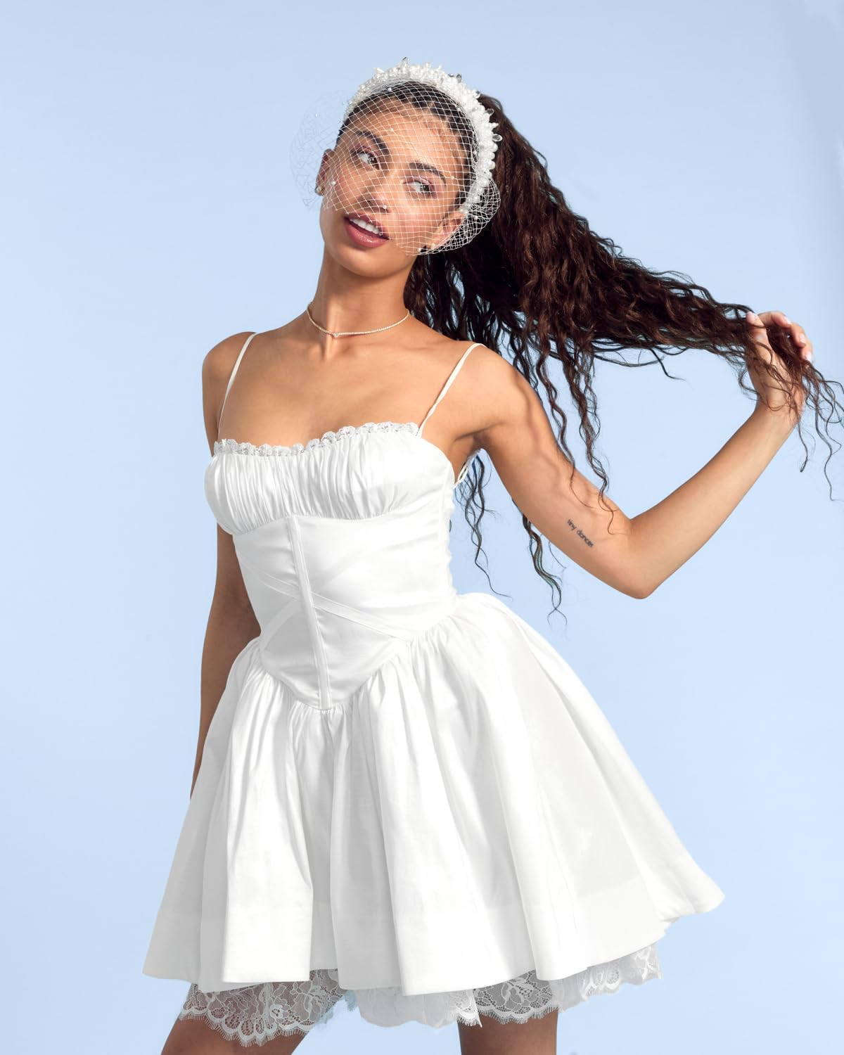 • Chic & Sweet: This birdcage veil and white beaded headband with pearls and clear crystal detailing is the perfect finishing touch for any bridal look, from engagement parties to bachelorette celebrations.