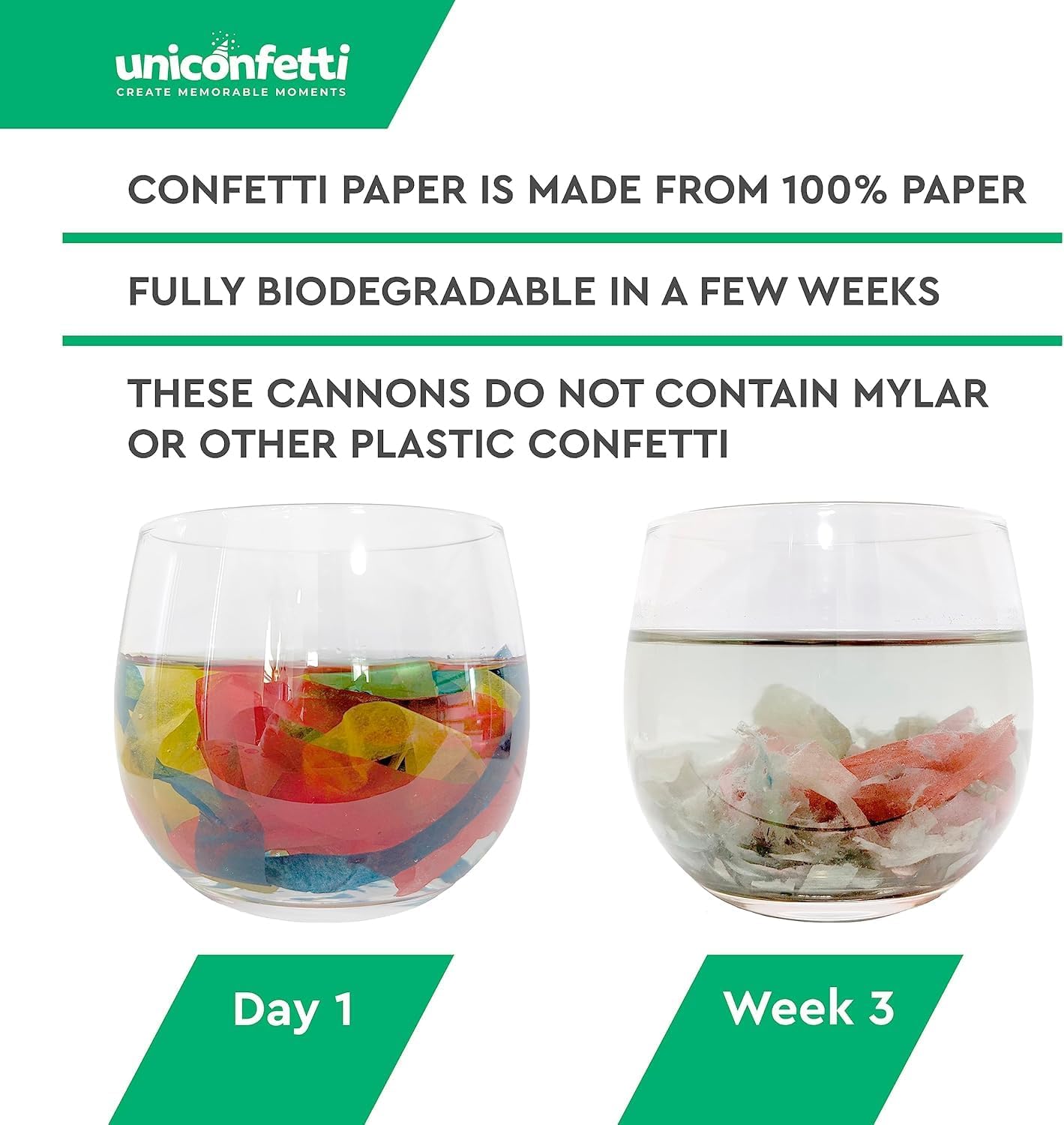 • ๐ŸŽ‰ 100% BIODEGRADABLE & SAFE - Confetti are made of lightweight fire resistant papers, 100% biodegradable. Color dye is non-toxic and won't rub onto your clothing. 100% safe for your party and good for the environment.