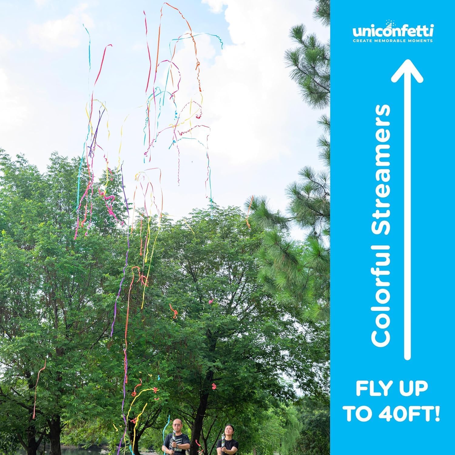 • ๐ŸŽ‰ EASY POINT & TWIST ACTION - Don't need the strongest arms to blow up these babies! Point upwards away from people and twist to shoot, confetti paper is loaded on top of compressed air and is launched by twisting the cannon. Operation manual is included inside the box.