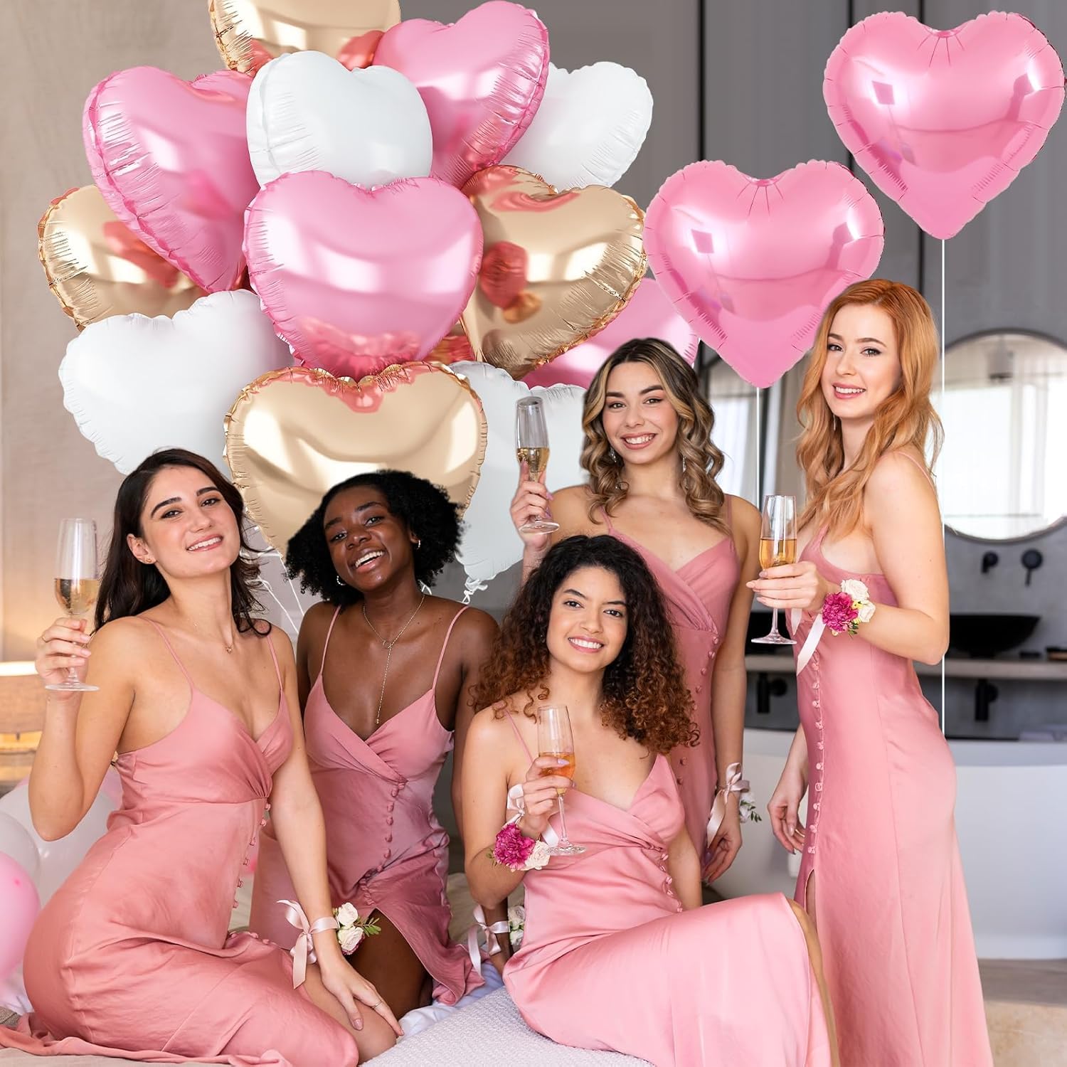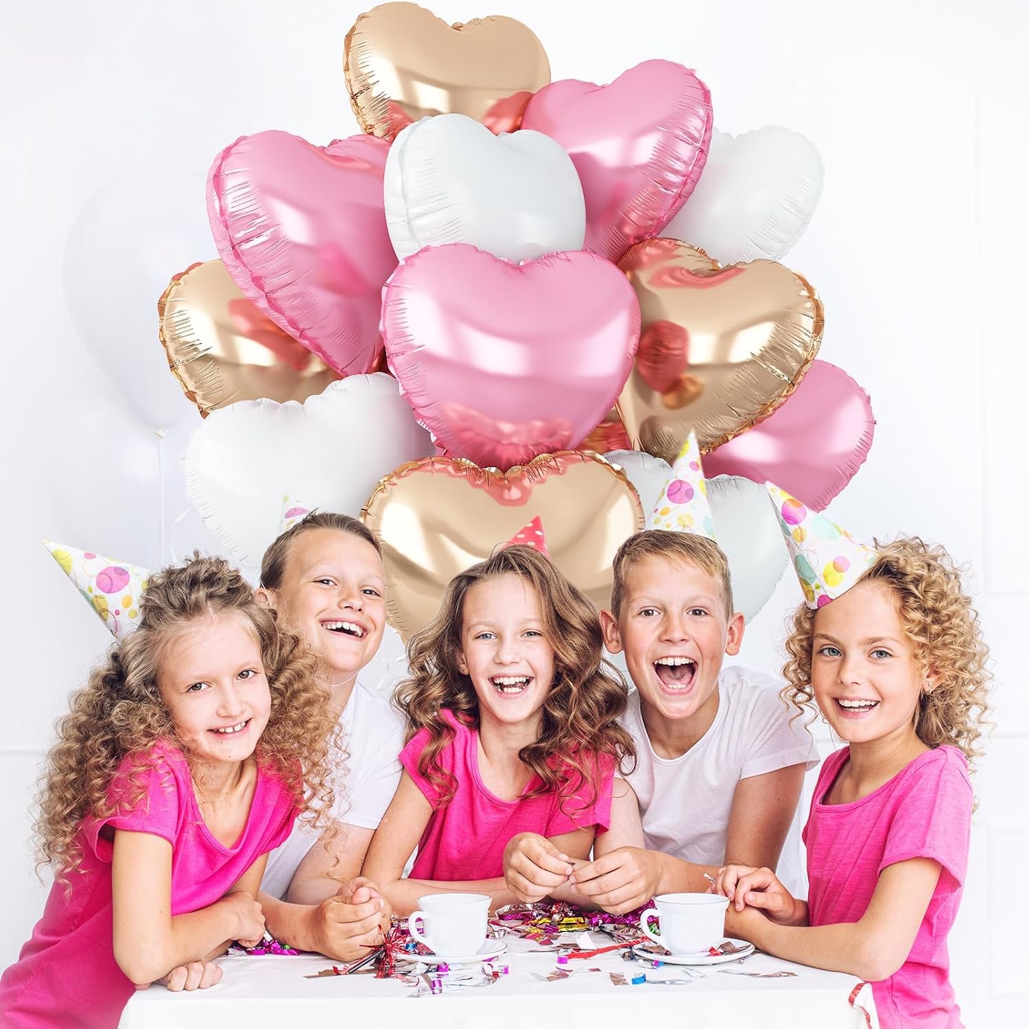 • 【12PCS HEART BALLOONS】Package include 4pcs light pink heart foil balloons,4pcs white heart foil balloons,4pcs rose gold heart foil balloons,1pc straw.Large enough to help you better decorate your party.