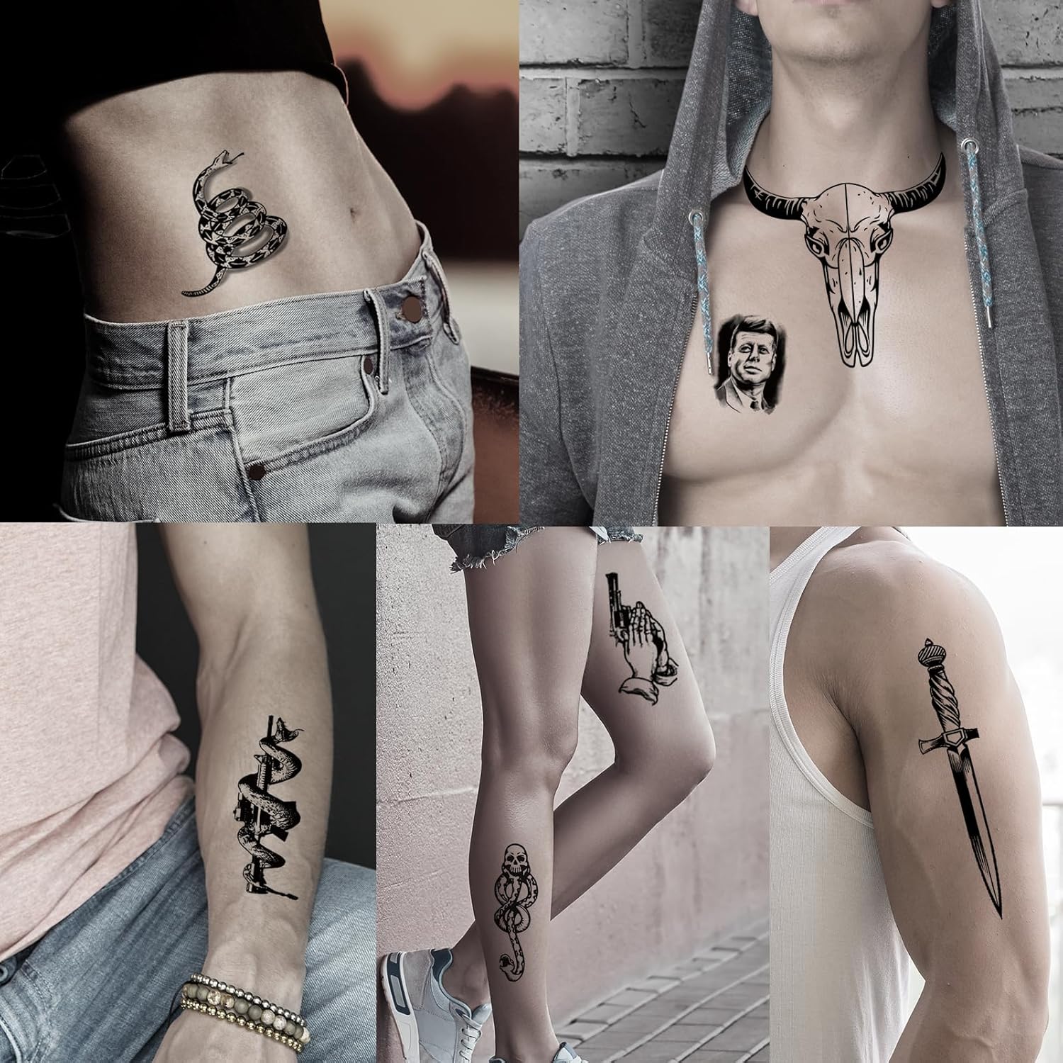 • 【BEAUTY AND REALISTIC】Show off your Halloween fake tattoos anywhere! Like arms, wrists, fingers, ankle, neck, shoulder, feet, legs! You can stick the tattoo to different parts of your body, they are also great for Halloween party, holiday, festivals, traveling and so on.