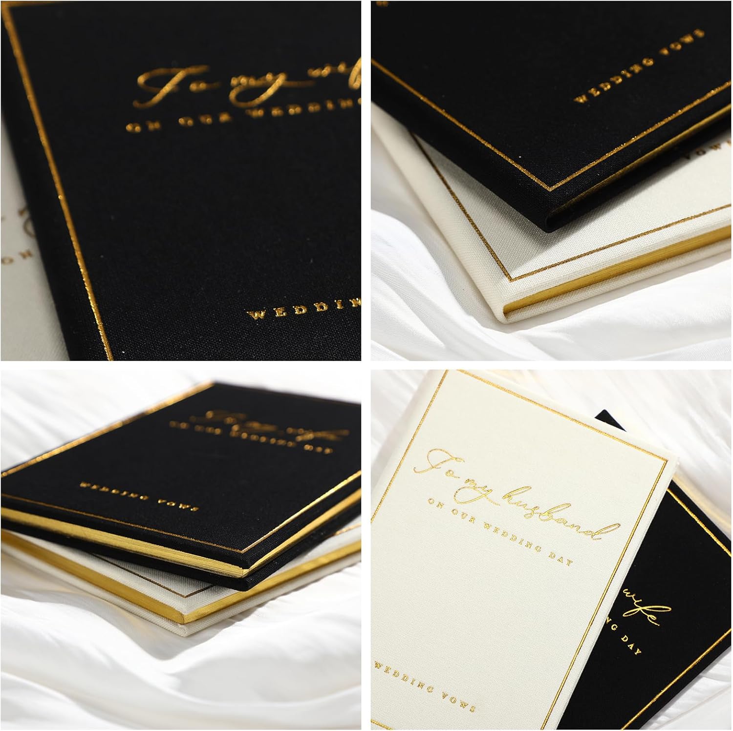 • Classic Color: these vow books features a classic black and white design that complements any wedding theme or style, and the elegant gold foil cover and soft fabric feel can add a touch of sophistication to your wedding decor