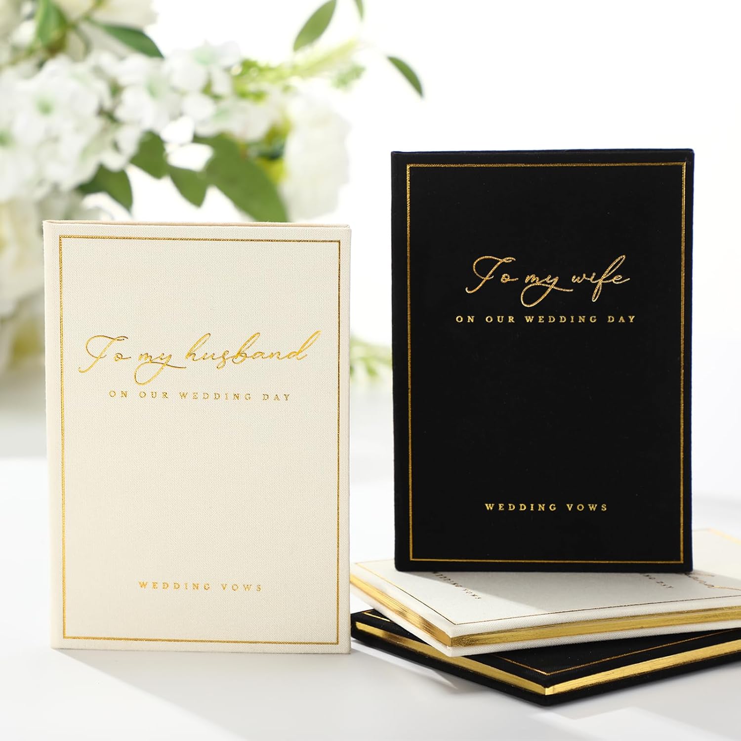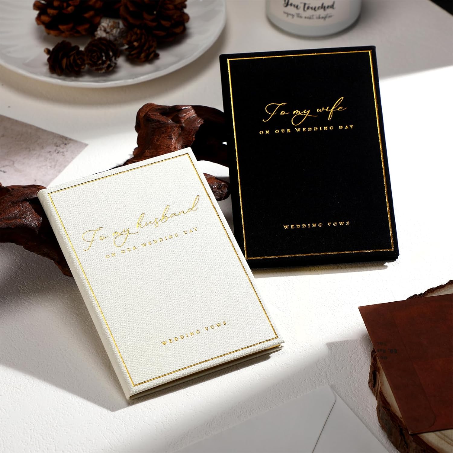 • Elegant Wedding Vow Books: you will receive two pieces wedding vow books, printed with [To my husband] and [To my wife]. These two books have gold foil cover and gold edges, which will add a refined and elegant feeling to the vow books. Whether you use them at the ceremony or keep them as souvenirs, these exquisite vow books are the nice souvenirs for exchanging vows on your special day