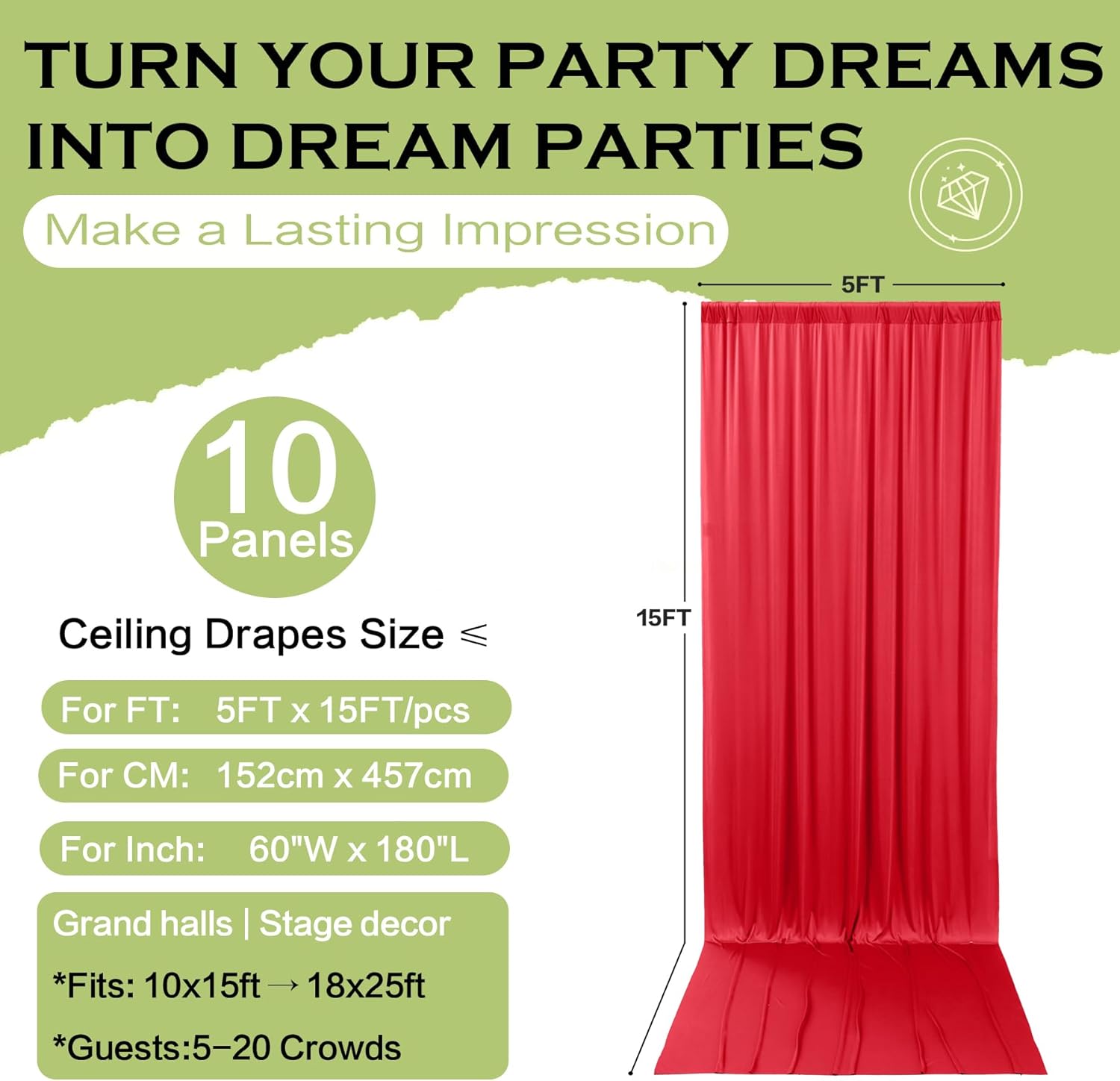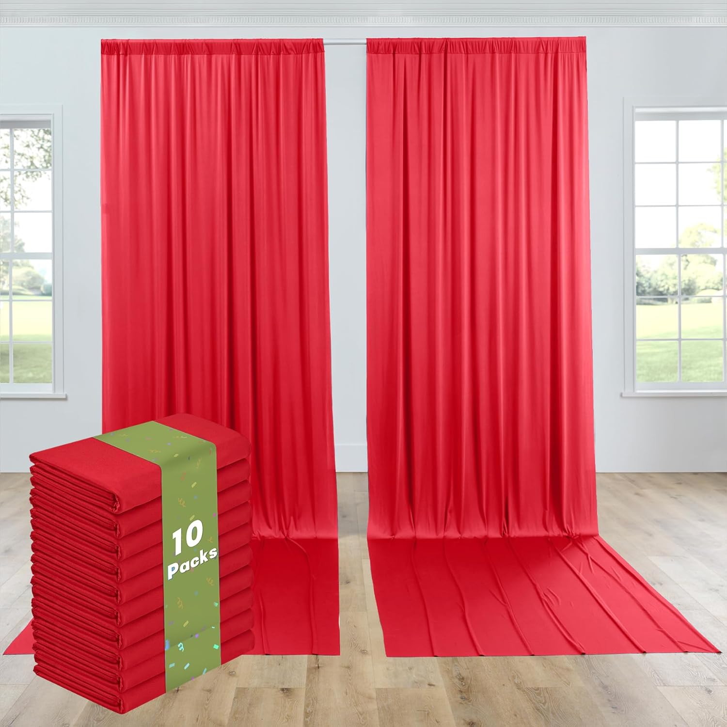 • 15FT Extra Long Backdrop Drapes: 10 Panels 5ftx15ft Red Backdrop Curtains for Parties. Totally 50FT(Width) x 15FT(Height). cortinas para fiestas decoracion.