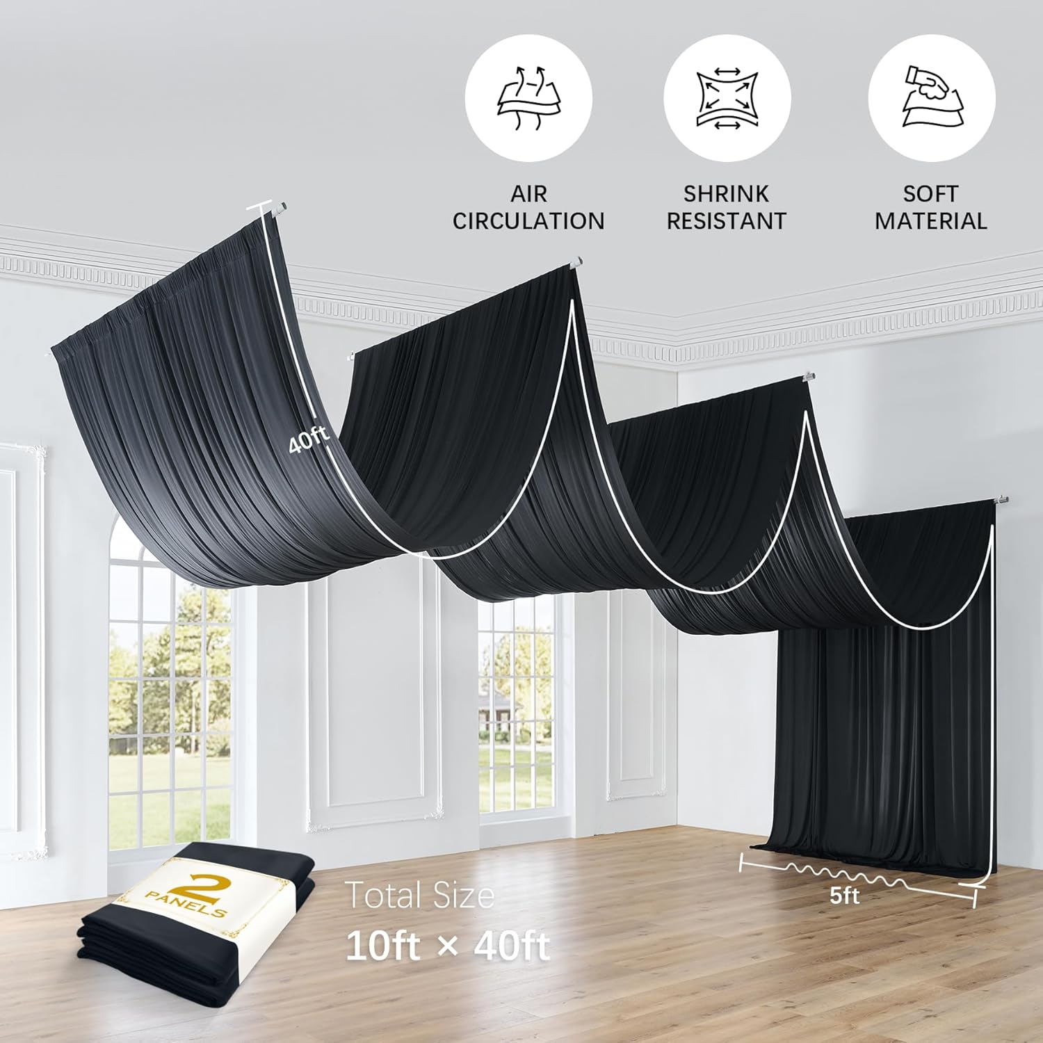 • 40ft Extra Long Ceiling Drapes: 2 Panels 5ftx40ft Black Backdrop Curtains for Parties. Totally 10FT(Width) x 40FT(Height). cortinas para fiestas decoracion.