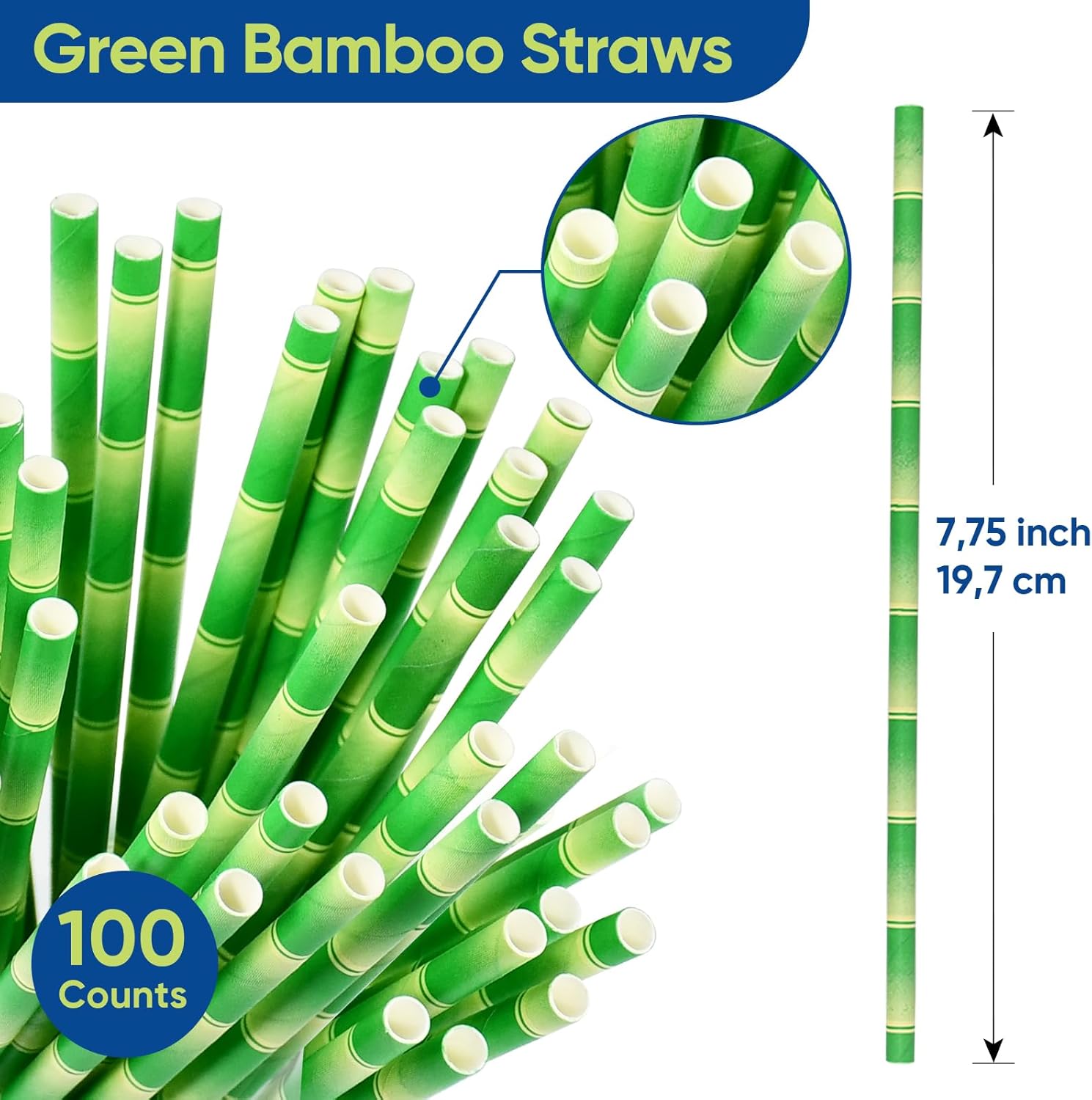 Paper Straws for Drinking Green Bamboo, 7.75" x 0.24" - for Cocktail, Juice, Iced Tea, 100% Biodegradable