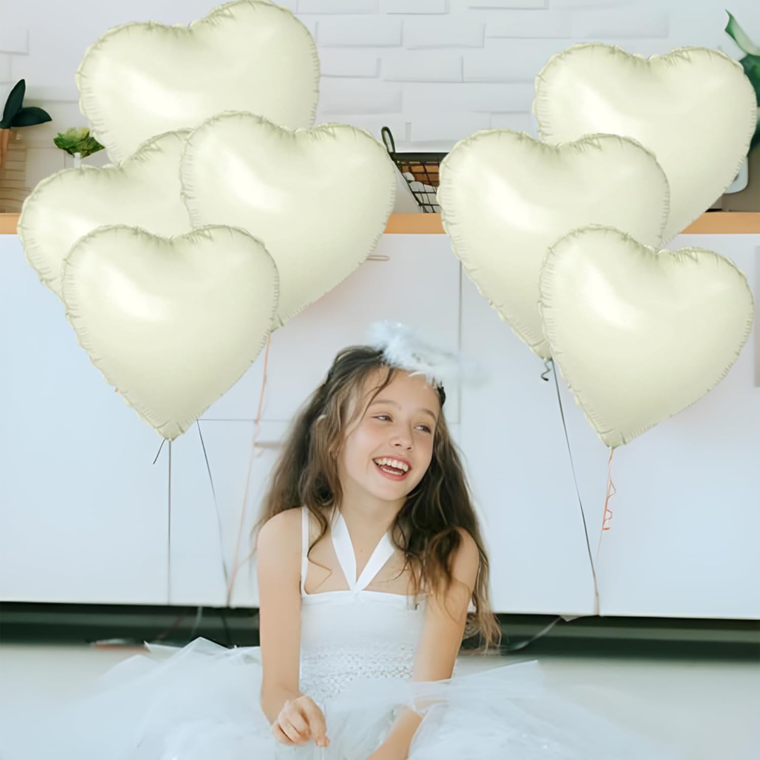 White Heart Ballloons,18 Inch Foil Love Heart Shaped Balloons 12Pcs Creamy White love balloon for Anniversary Wedding Birthday Party Baby Shower Decorations