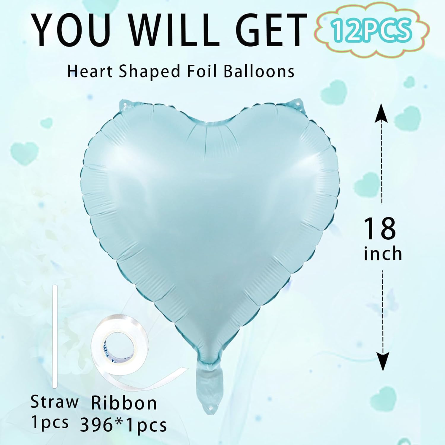 Blue Heart Ballloons,18 Inch Pastel Blue Foil Love Heart Shaped Balloons 12Pcs Baby Blue love balloon for Anniversary Wedding Birthday Party Baby Shower Valentines Day Decorations
