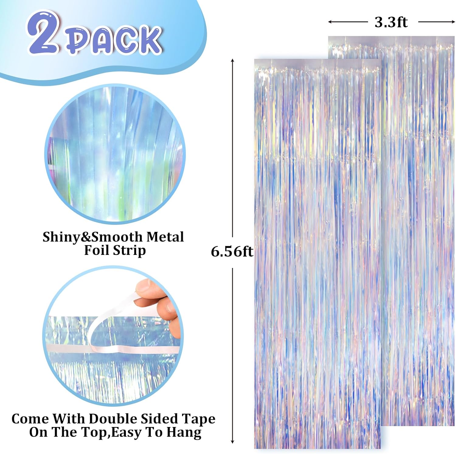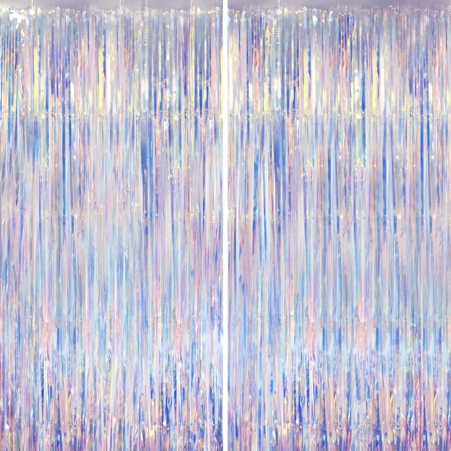 2 Pack Iridescent Foil Fringe Curtains, Holographic Tinsel Streamers Birthday Party Decorations, Fringe Backdrop for Kids Birthday, Baby Shower, Anniversary, Engagement Themes Party