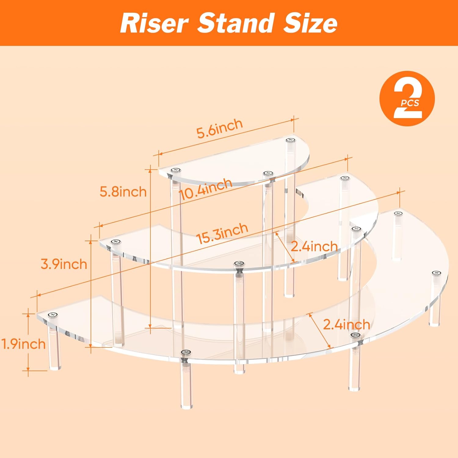3 Tier Acrylic Display Risers 2 Pack, Half Moon Cupcake Stand, Clear Perfume Organizer, Dessert Stand for Display, Clear Display Stand for Food, Cupcake, Perfume, Collections