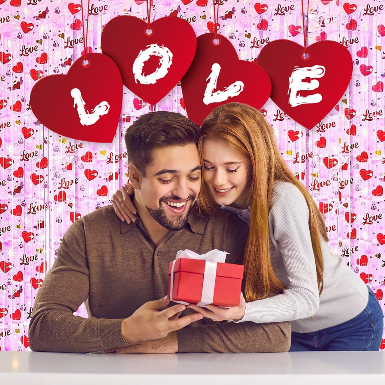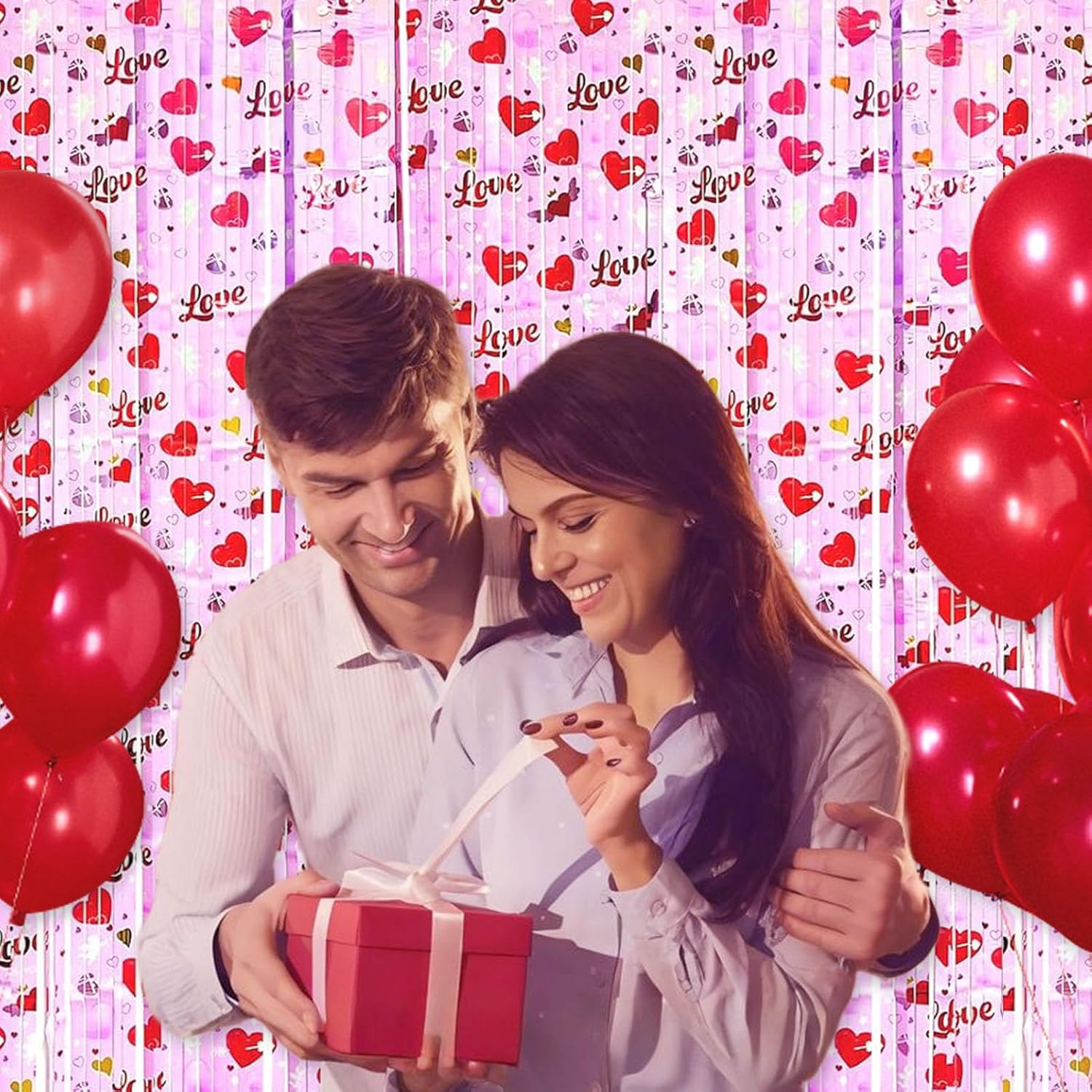 4 Pack Love Pink Wave Foil Fringe Curtain Backdrop, 3.28Ft x 8.2Ft Metallic Tinsel Foil Fringe Streamer Curtains for Photo Booth, Mother's Day, Easter, Birthday, Wedding Party Decoration
