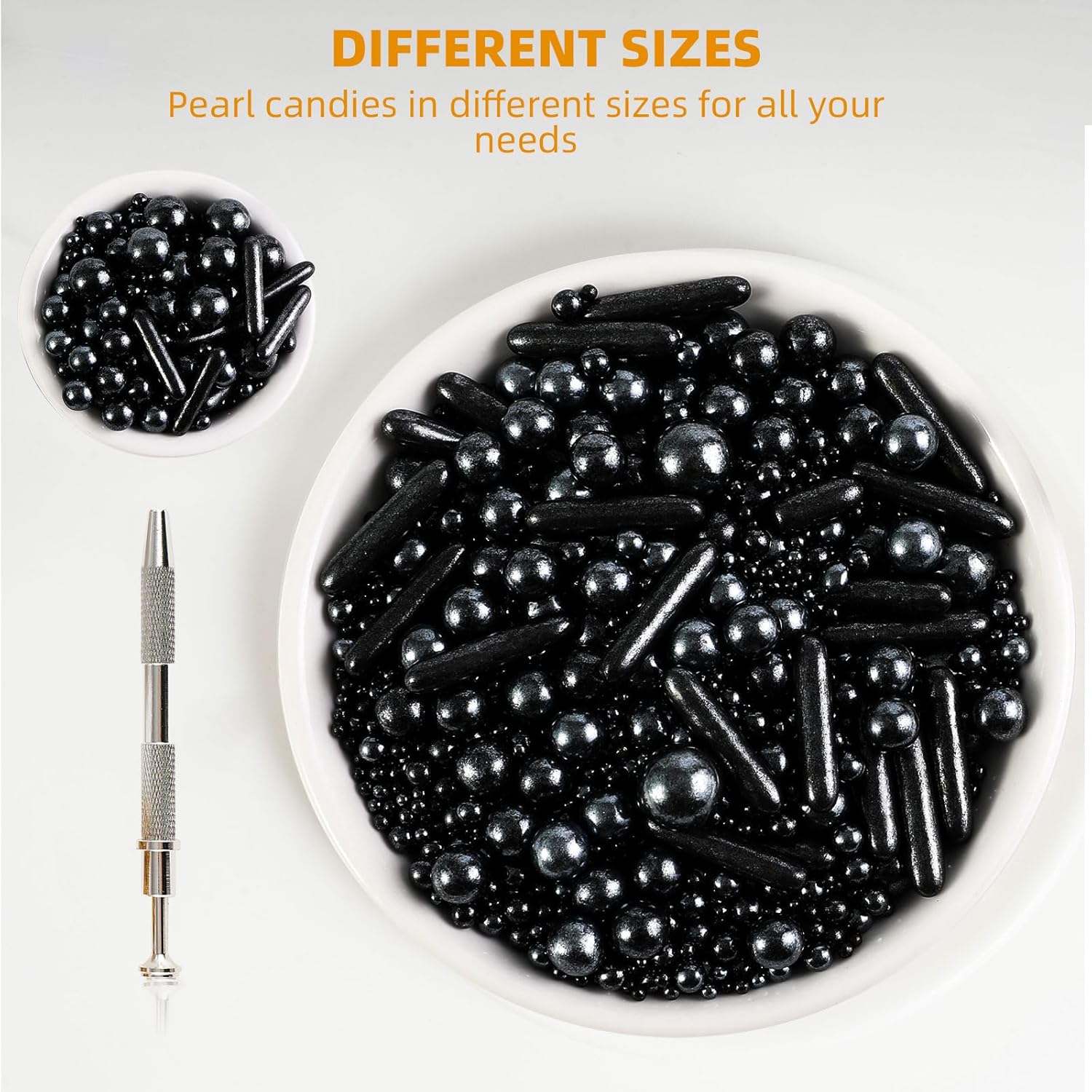 • 【Product List】: You will receive: 1 box of Black cake sprinkles, 118g/4.16oz. 1 piece of pearl grabber. Sufficient quantity, convenient and practical, it can meet your daily needs well.