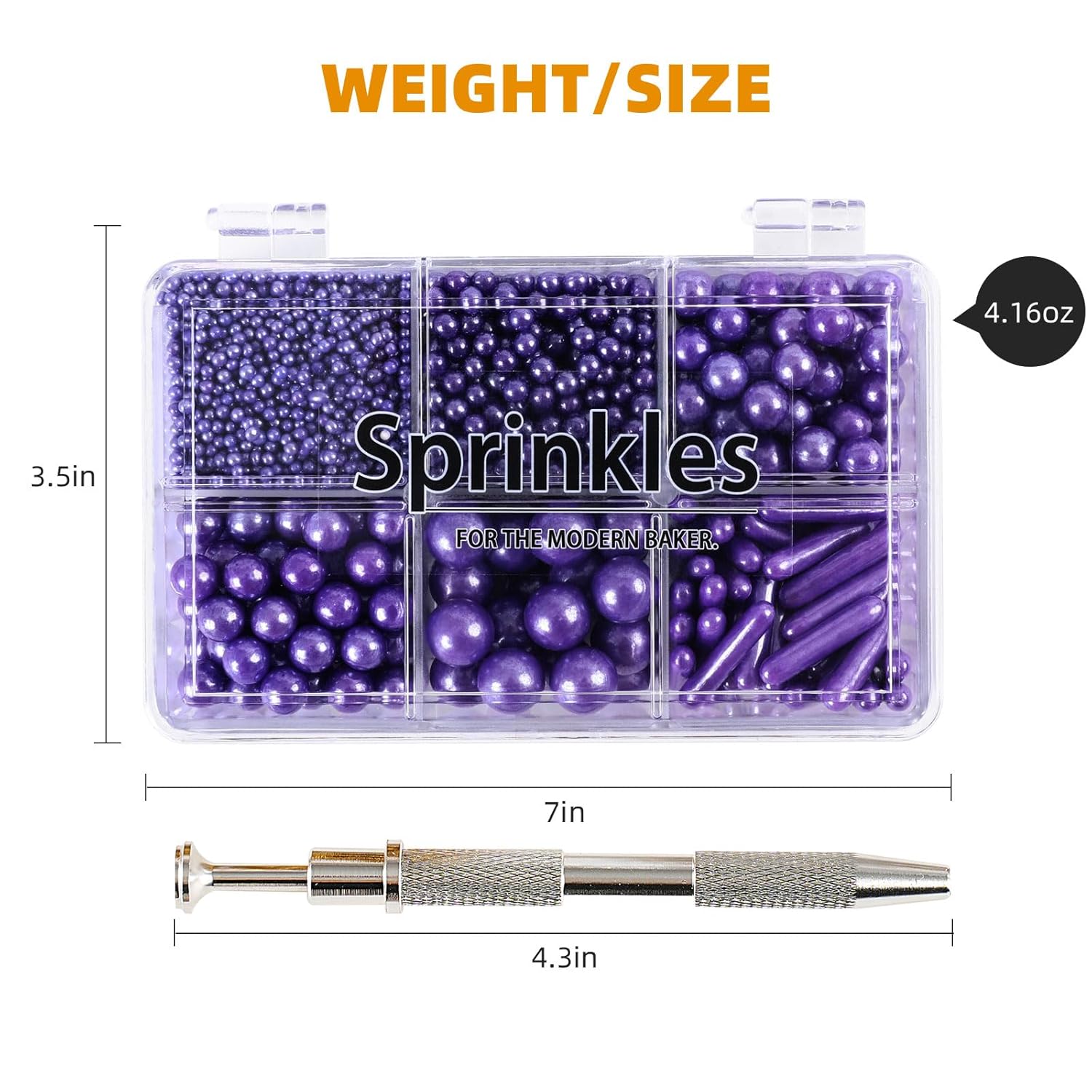 • 【Product List】: You will receive: 1 box of Purple cake sprinkles, 118g/4.16oz. 1 piece of pearl grabber. Sufficient quantity, convenient and practical, it can meet your daily needs well.