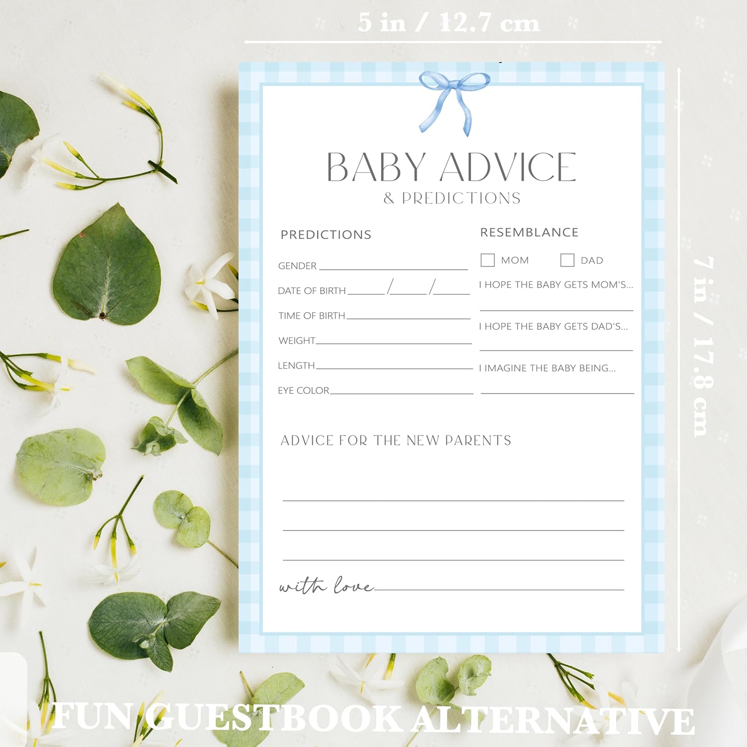 Advice For New Parents Baby Shower, Baby Predictions & Advice Cards For Baby Shower Games Activities, Wishes for Baby, 25 Double-Sided Thick Cards – Blue Bow A01