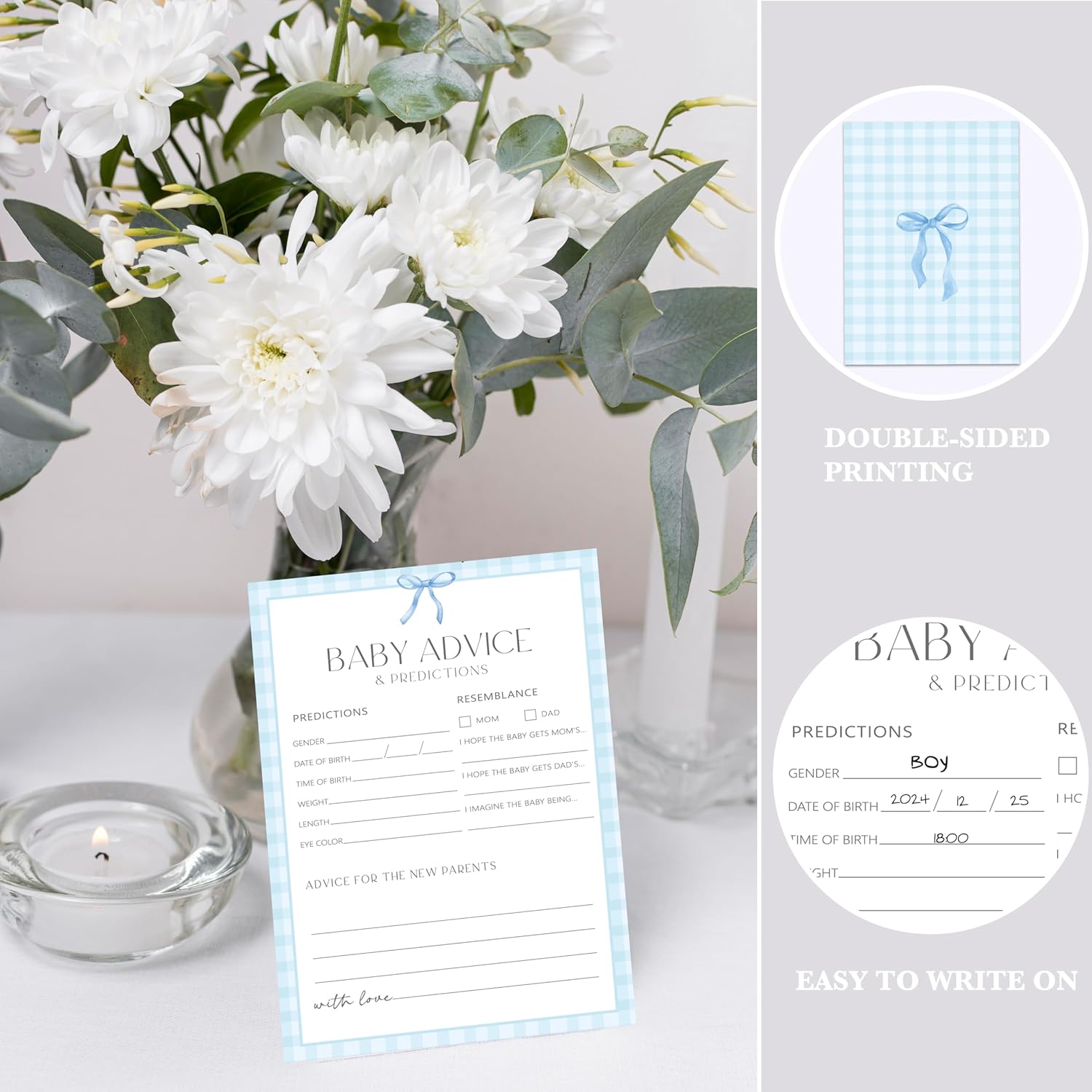 • Effortless Event Planning: Simplify your baby shower or gender reveal with these pre-designed, easy-to-use cards, perfect for advice for new parents and heartfelt wishes for the baby
