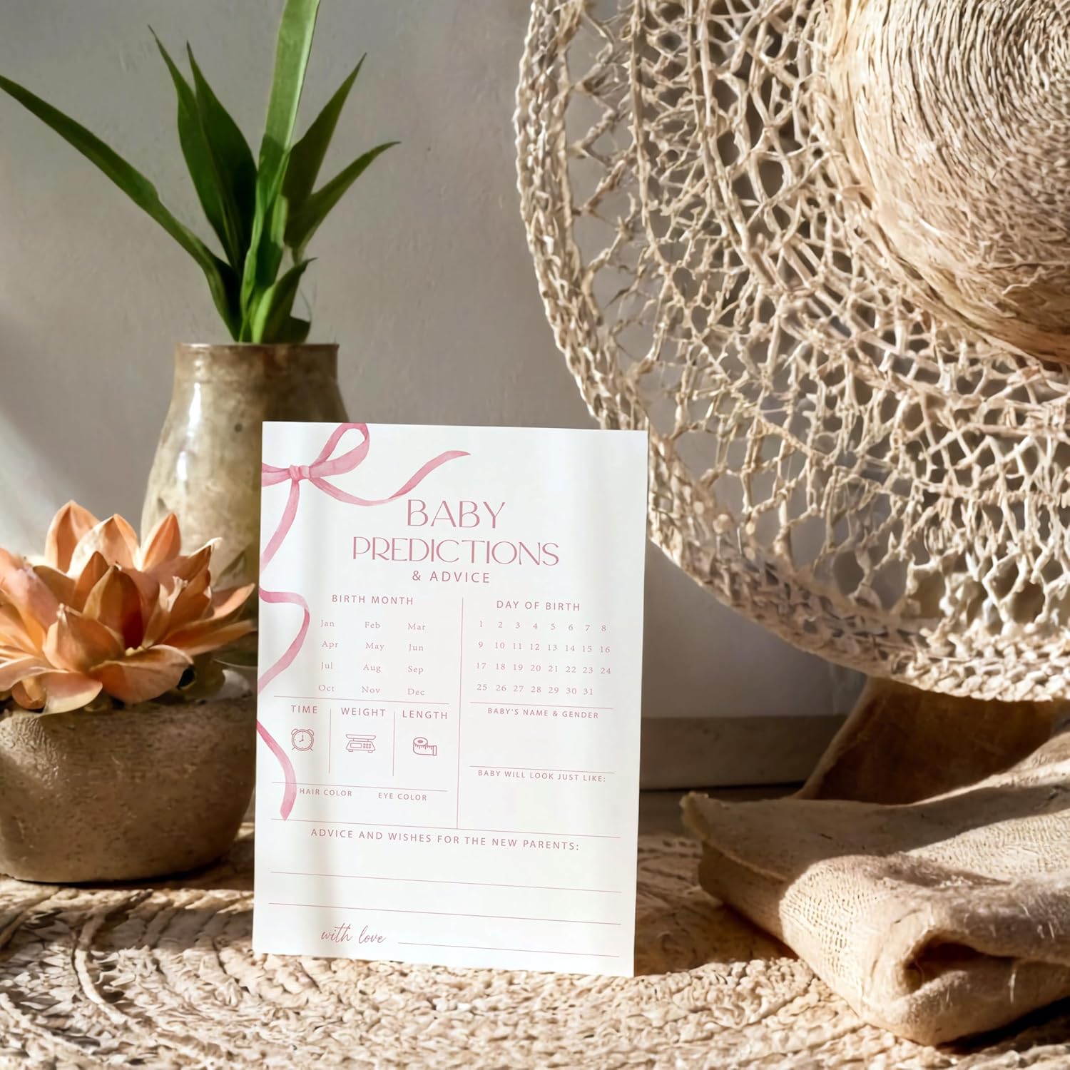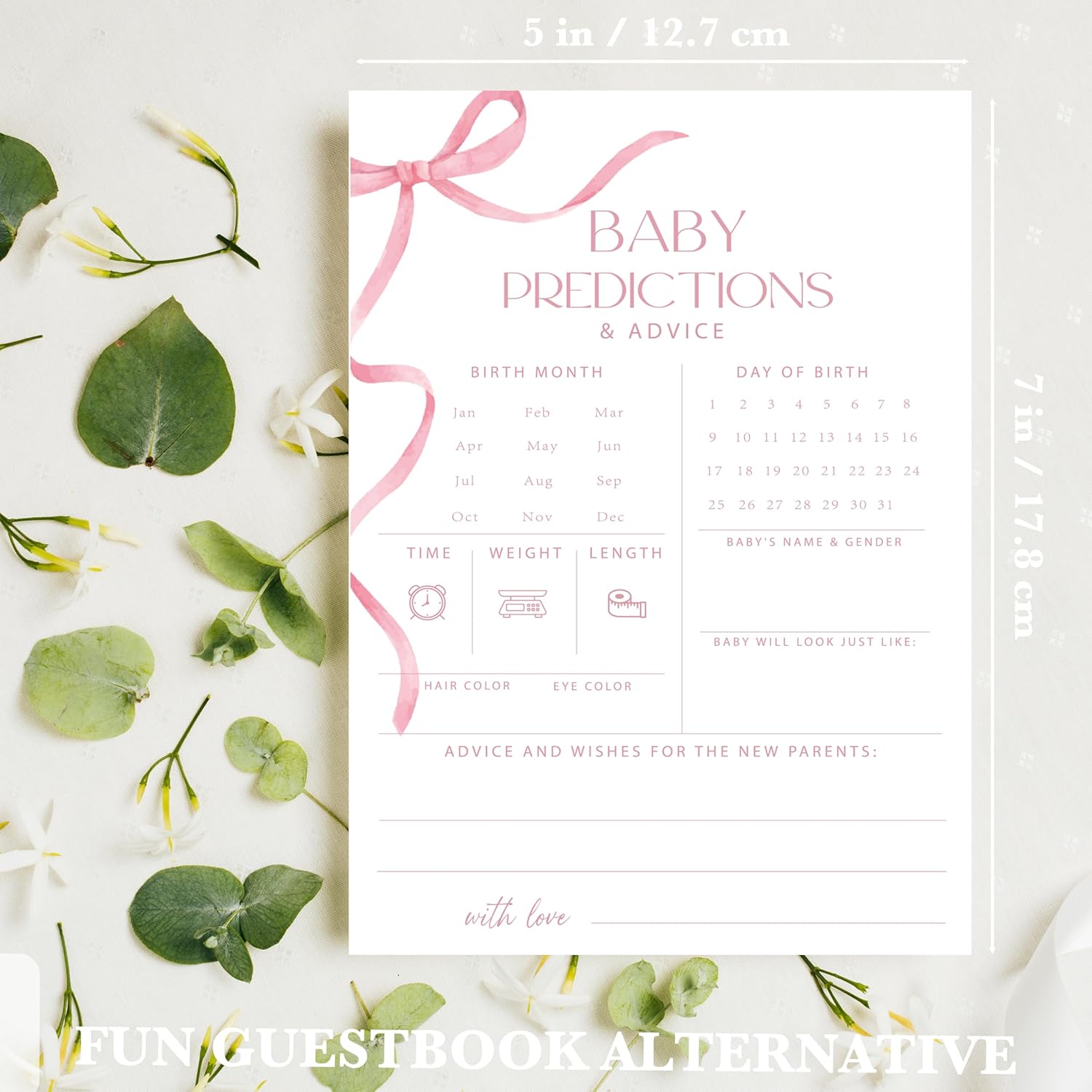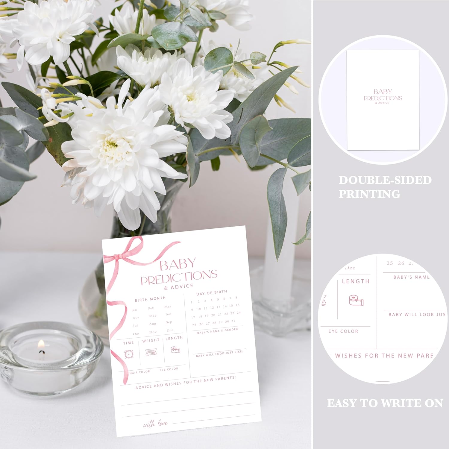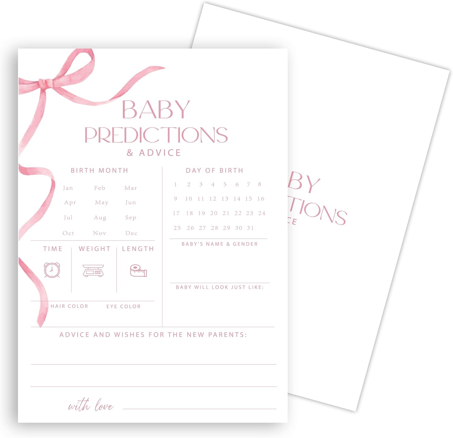 Advice For New Parents Baby Shower, Baby Predictions & Advice Cards For Baby Shower Games Activities, Wishes for Baby, 25 Double-Sided Thick Cards – Pink Bow A05