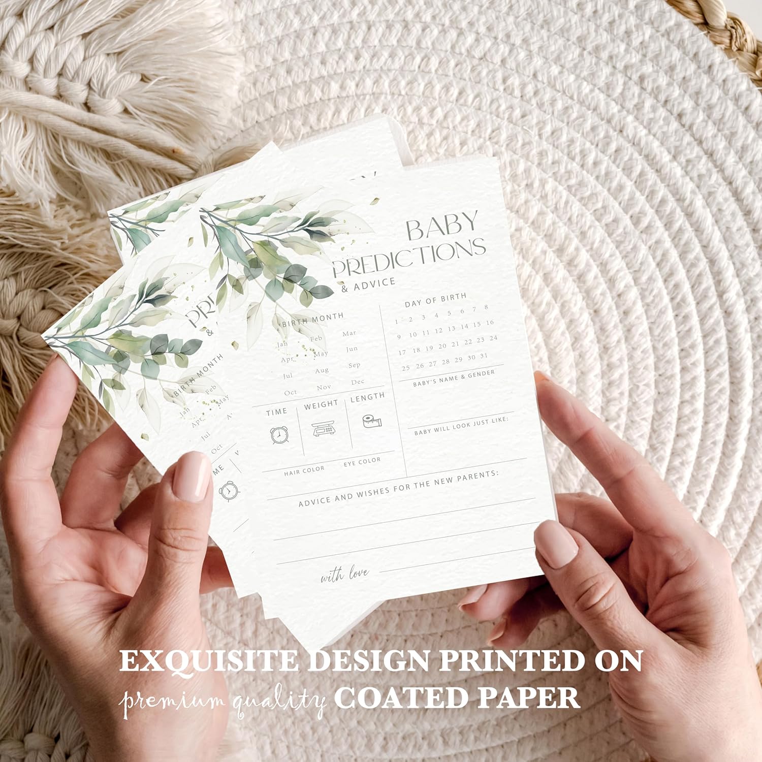 Advice For New Parents Baby Shower, Baby Predictions & Advice Cards For Baby Shower Games Activities, Wishes for Baby, 25 Double-Sided Thick Cards – Greenery A06