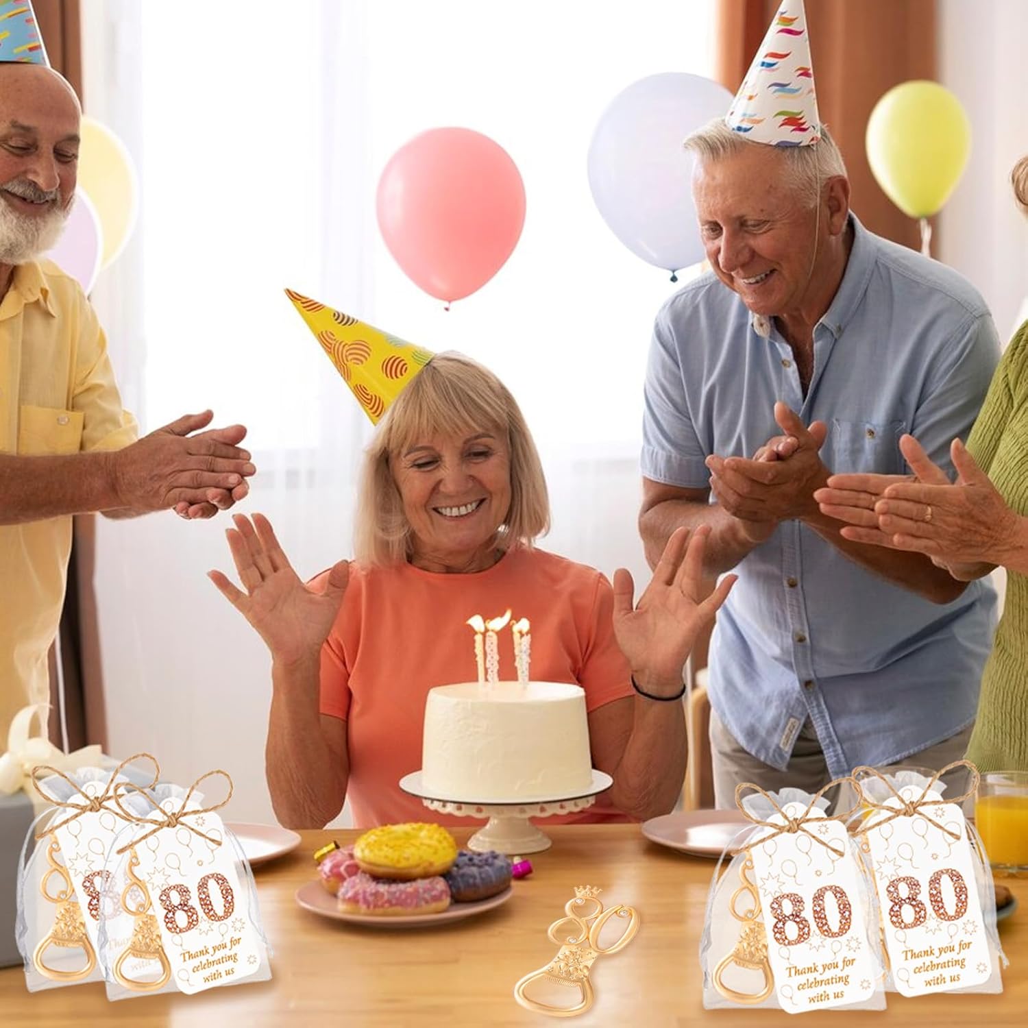 • Convenient Party Favor: Our 80th bottle opener party favors are designed with convenience in mind, making them easy to use and carry. Each set includes a personalized bottle opener, a practical gift that your guests can use long after the celebrations are over